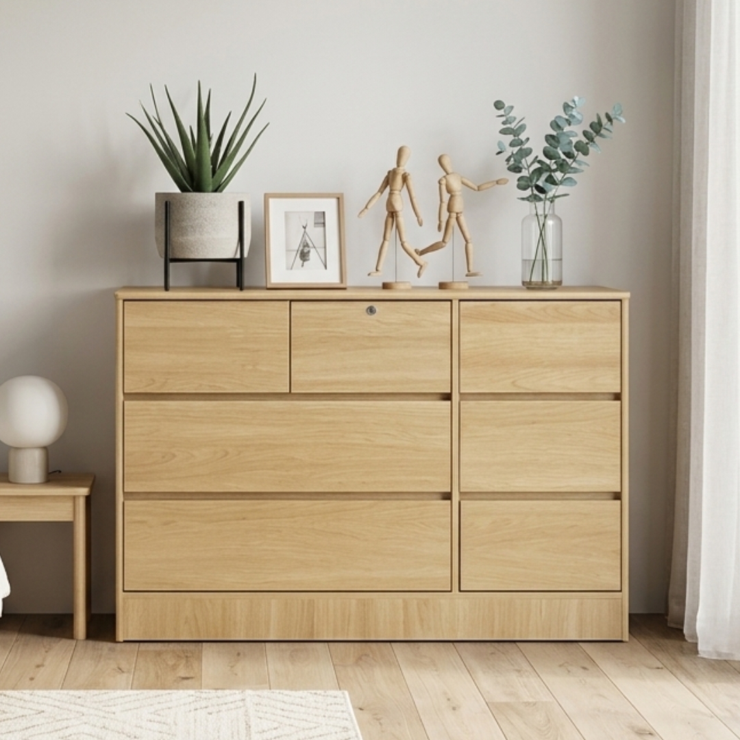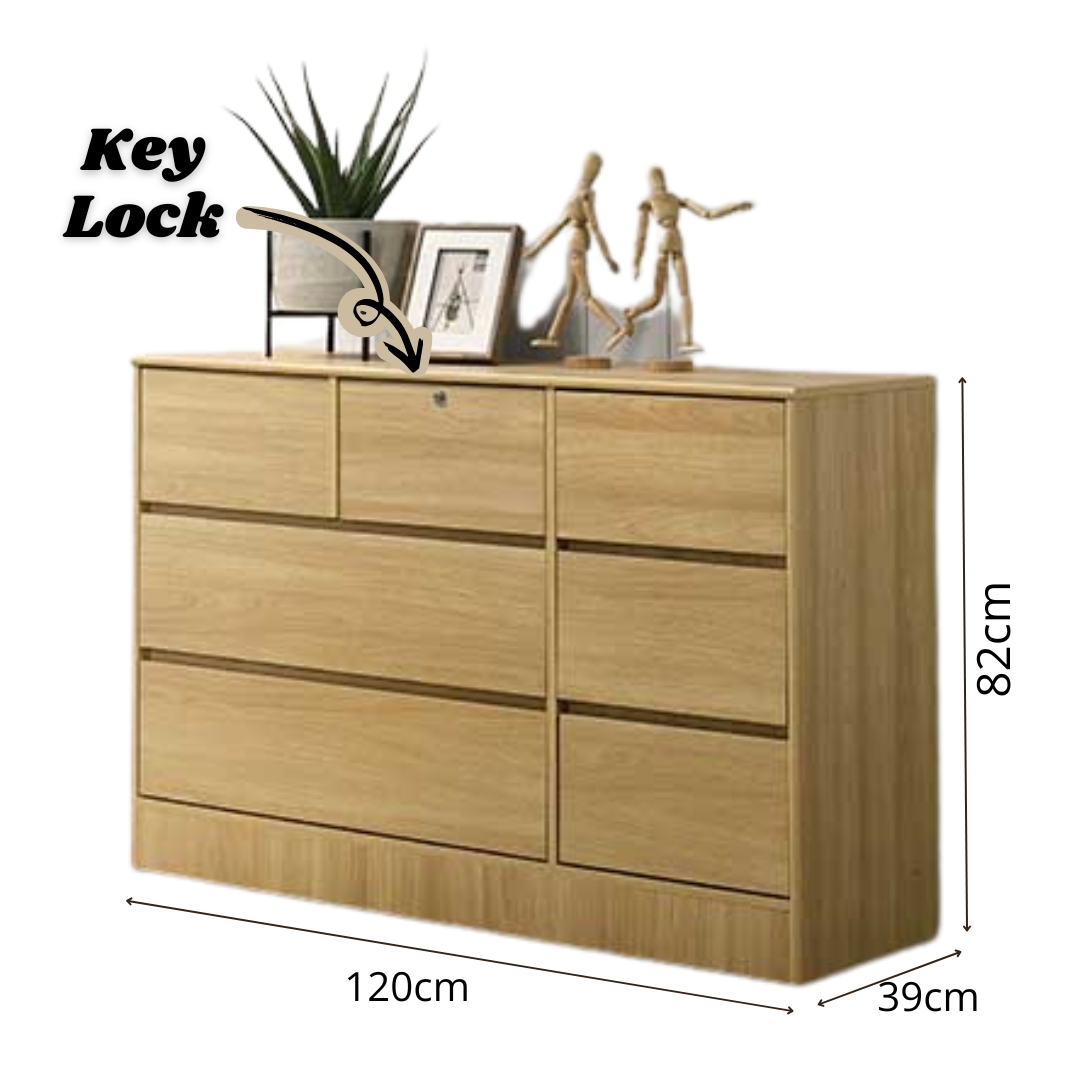 - HAZEL 7 Drawer Chest With Key Lock-Oak