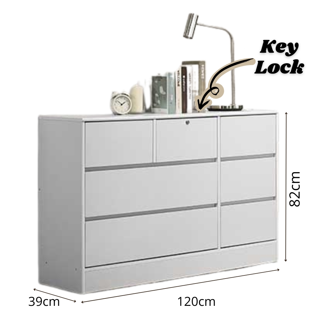 HAZEL 7 Drawer Chest With Key Lock-White
