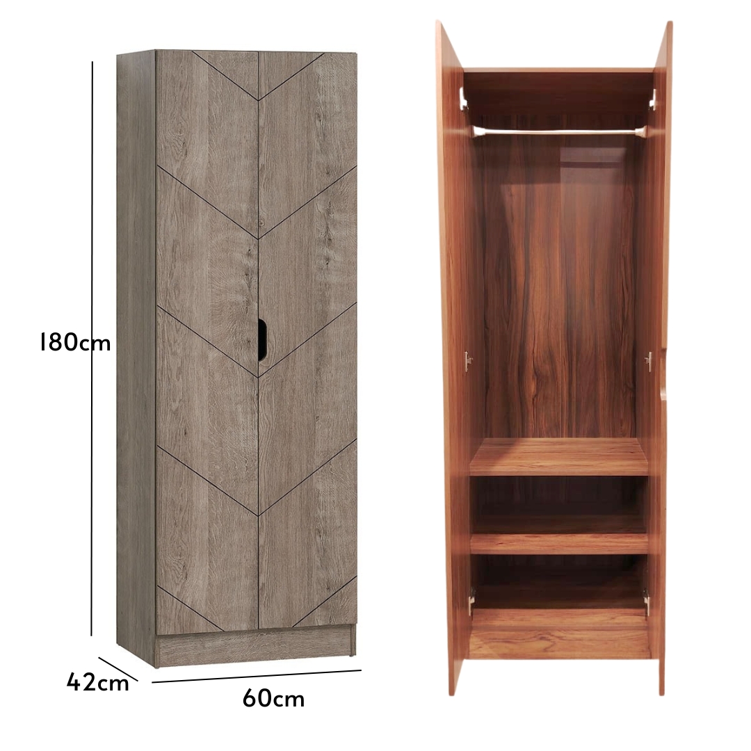 Siri Almari Pintu Hayun HECATE menampilkan reka bentuk klasik dengan fungsi penyimpanan praktikal. Ditawarkan dalam pilihan 2 pintu dan 3 pintu, sesuai untuk pelbagai saiz bilik. Panel pintu dihiasi dengan garisan beralur moden. Tersedia dalam warna walnut atau sonoma oak untuk sentuhan semula jadi dan bergaya.