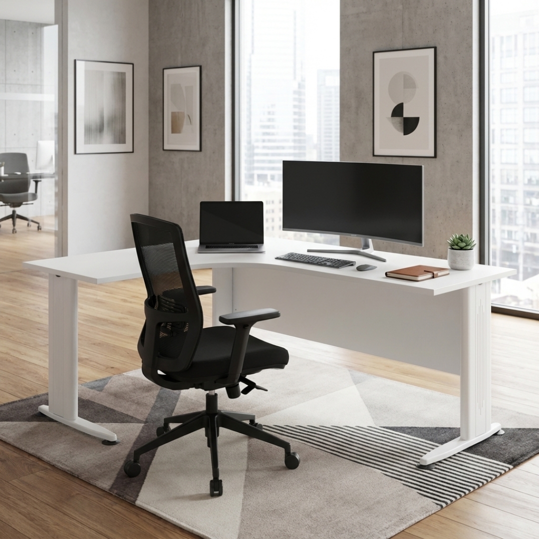 - HELLY 150-180cm L Shaped Melamine Executive Table