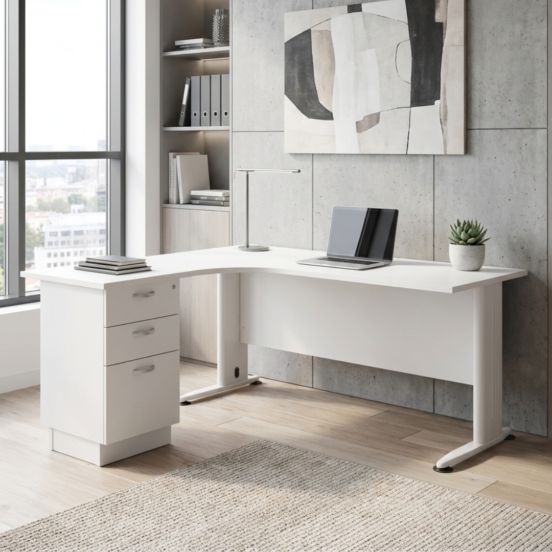 - HELLY 150-180cm L Shaped With Pedestal Melamine Executive Table