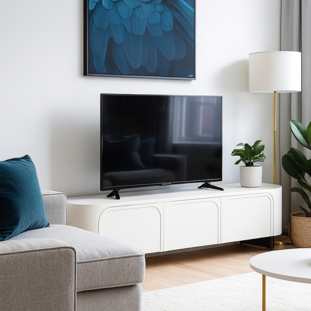 Sophisticate your home with the HILDA 6-Feet Rounded End TV Cabinet. Its signature curved and rounded design eliminates sharp edges, offering a soft, fluid look. Finished in a pristine white painted coating, it features two drawers and one door for seamless organization. Available in both 200cm and 240cm lengths, it is the perfect statement piece for a safe, modern, and stylish living room.