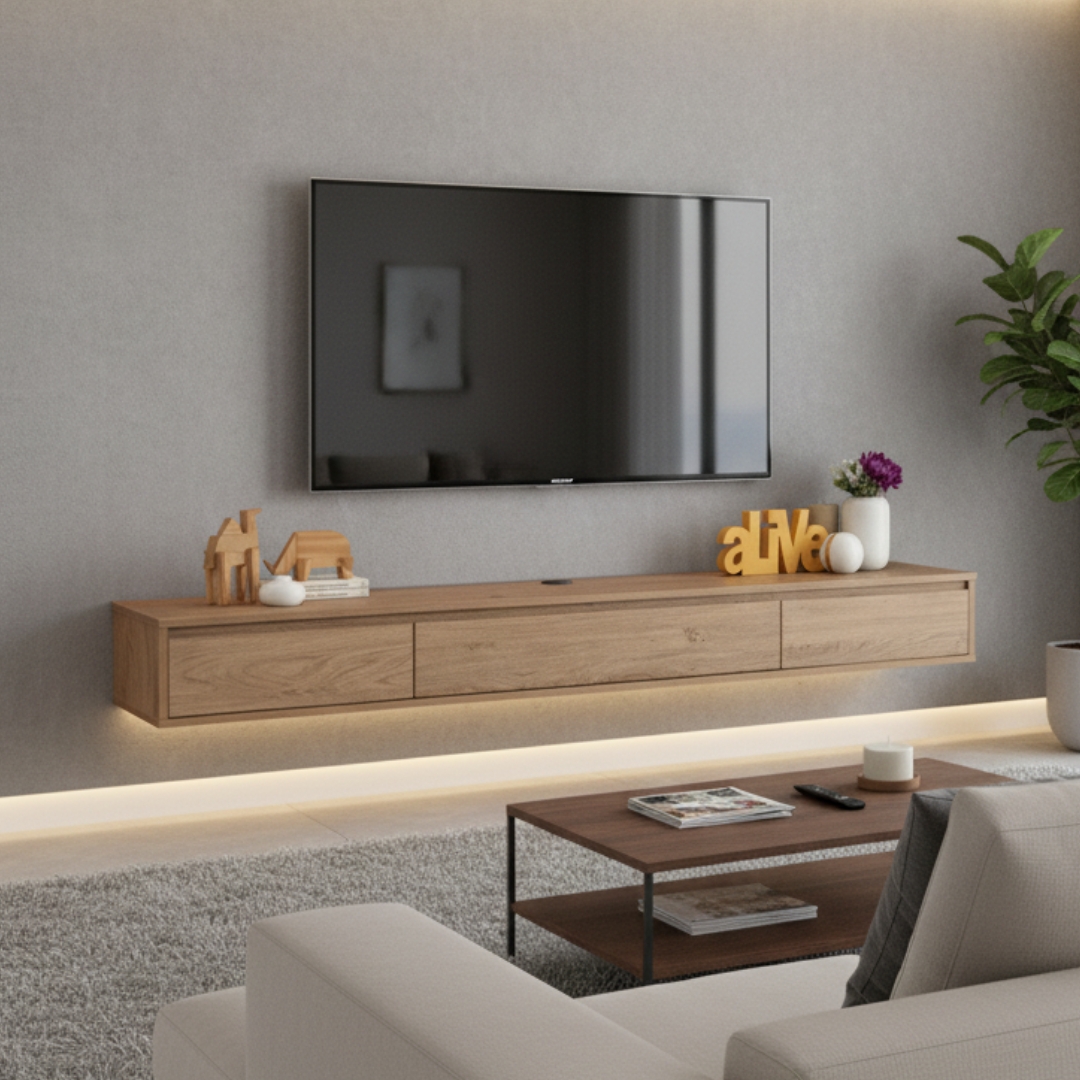 - HIRANO 180cm Wall Mounted TV Cabinet-Oak
