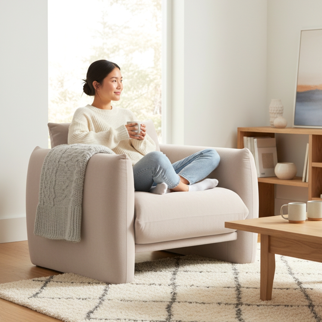 FERN 1 Seater Sheep Wool Fabric Sofa-Beige