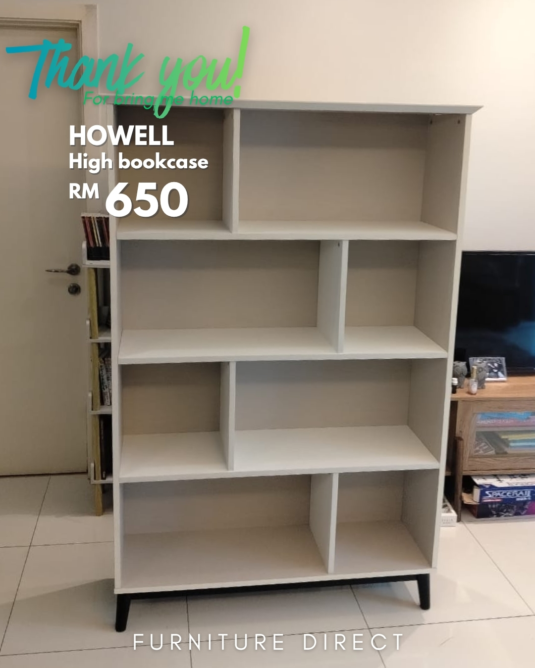 Susun koleksi buku anda dengan lebih kemas menggunakan Rak Buku Tinggi HOWELL. Dengan lebar 112sm yang lebih luas, unit ini menyediakan ruang storan yang besar untuk buku, dokumen, dan barang hiasan anda. Ia diperbuat daripada papan melamin (melamine board) yang berkualiti tinggi, menjadikan permukaannya tahan calar dan mudah dibersihkan. Disokong oleh kaki kayu padu yang teguh, rak buku HOWELL ini menggabungkan fungsi praktikal dan estetika moden untuk ruang kerja atau ruang tamu anda.