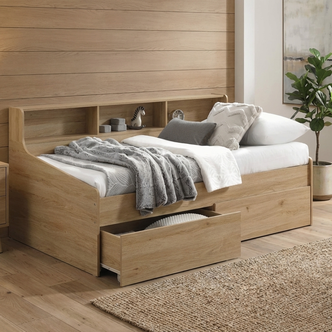 IRENE Single & Super Single Drawer Storage Daybed-Oak
