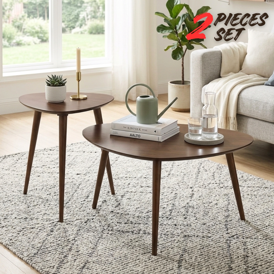 Maximize your floor space with the artistic and functional ITAMO Solid Wood Nesting Table Set. Crafted from 100% full solid rubberwood, this set features a unique triangle-shaped table top with smooth, rounded edges for a modern organic feel. The set includes one large, high table and one smaller, lower table, designed to nest perfectly together or be used separately as accent pieces. Whether used as a tiered coffee table or split into side tables, the ITAMO brings a touch of Scandinavian charm and heavy-duty durability to your home.