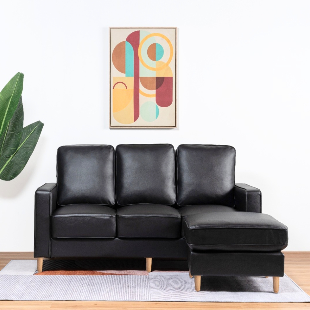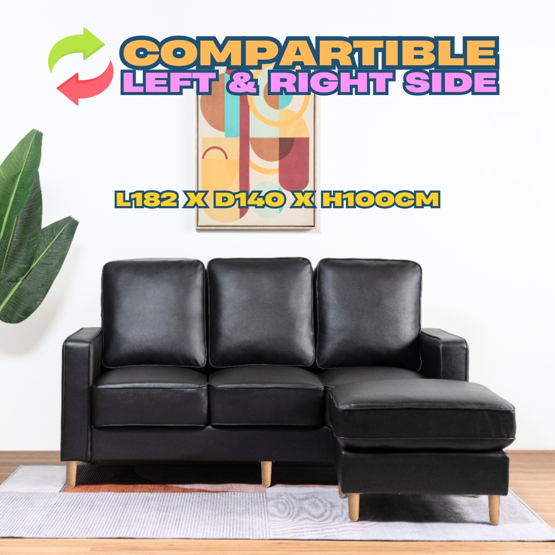- JAECOO 3 Seater Pet Friendly L Shaped Sofa- Black PU