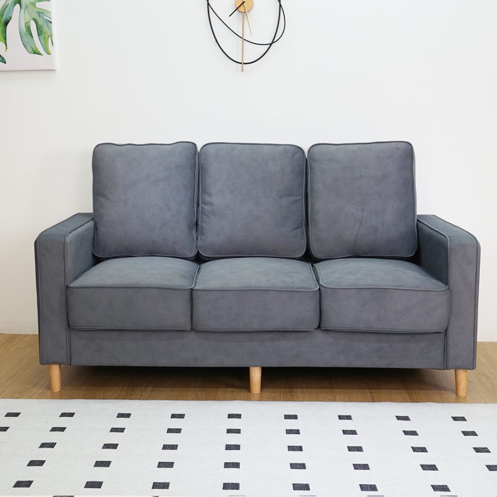 Sofa 3 Tempat Duduk JAECO menggunakan fabrik mesra haiwan peliharaan yang tahan calar dan mudah dibersihkan. Sarung kusyen boleh ditanggalkan untuk dicuci, memastikan kebersihan berterusan. Kaki kayu getah padu memberi sokongan kukuh. Reka bentuk kompak sesuai untuk pangsapuri atau unit Airbnb, selesa dan bergaya.