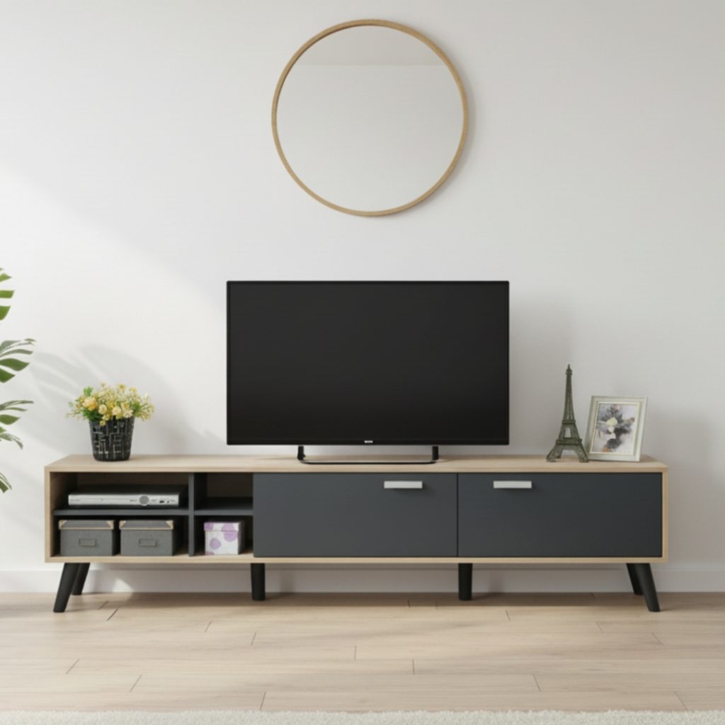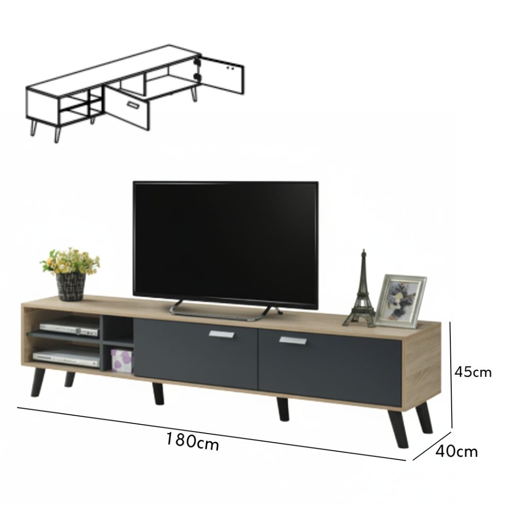 - JUSTICE 180cm 2 Door TV Cabinet-Oak+Grey