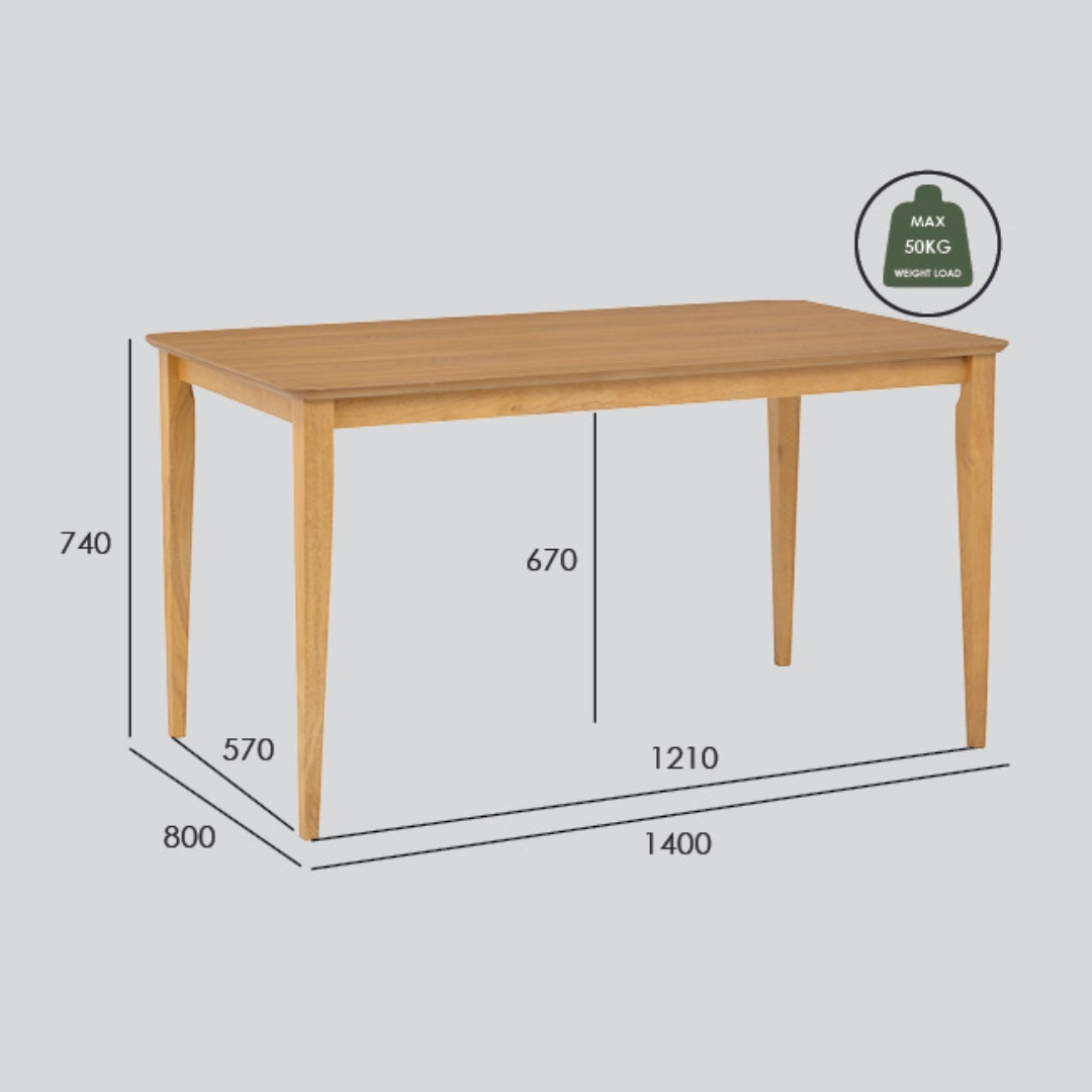 - Table overall size L140 x W80 x H74cm