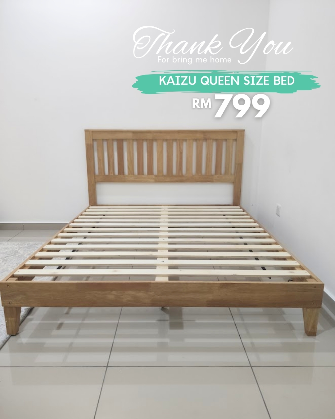 KAIZU Queen Size Wooden Bed Frame-Natural