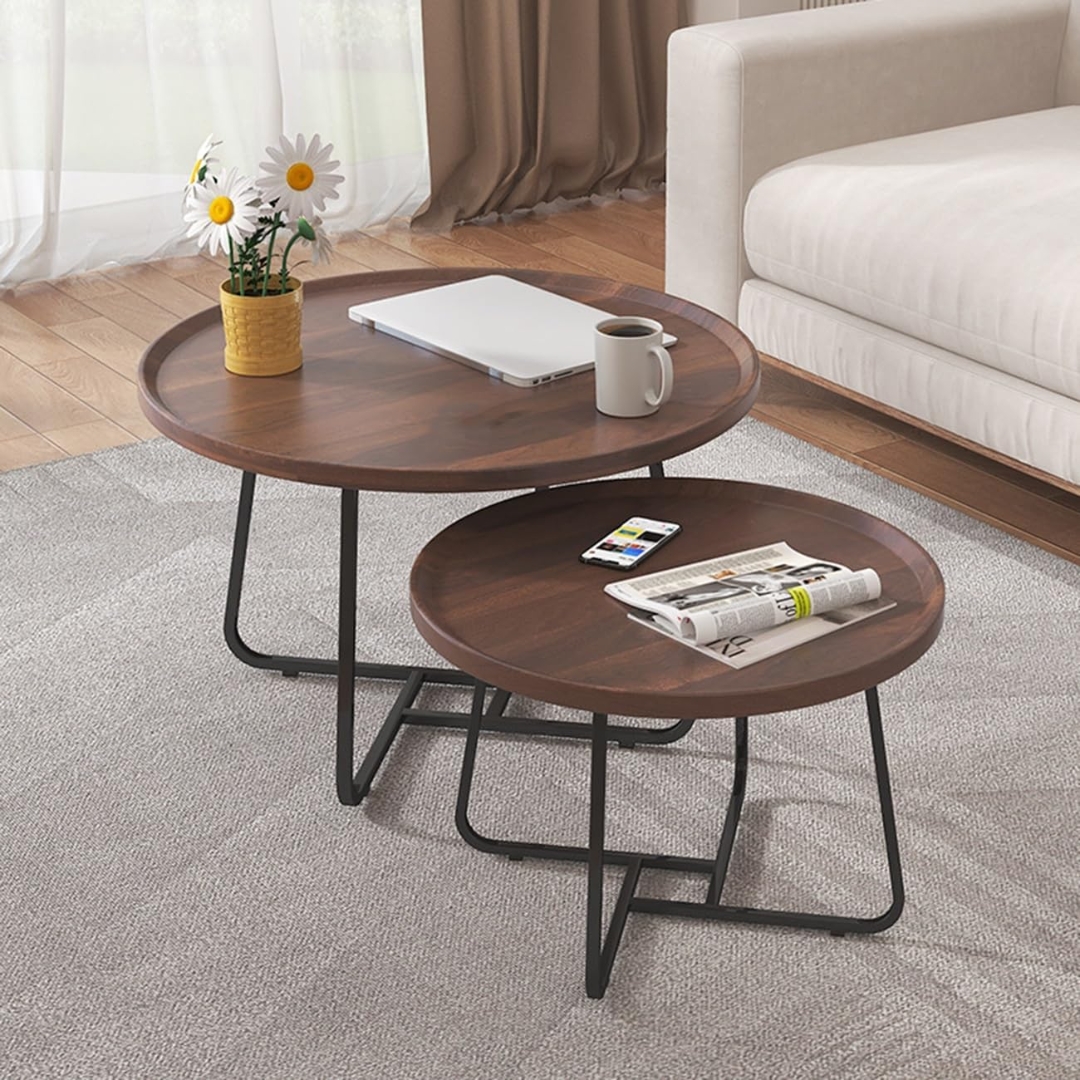 - KAYSA 2 In 1 Round Nesting Coffee Table Set-Walnut