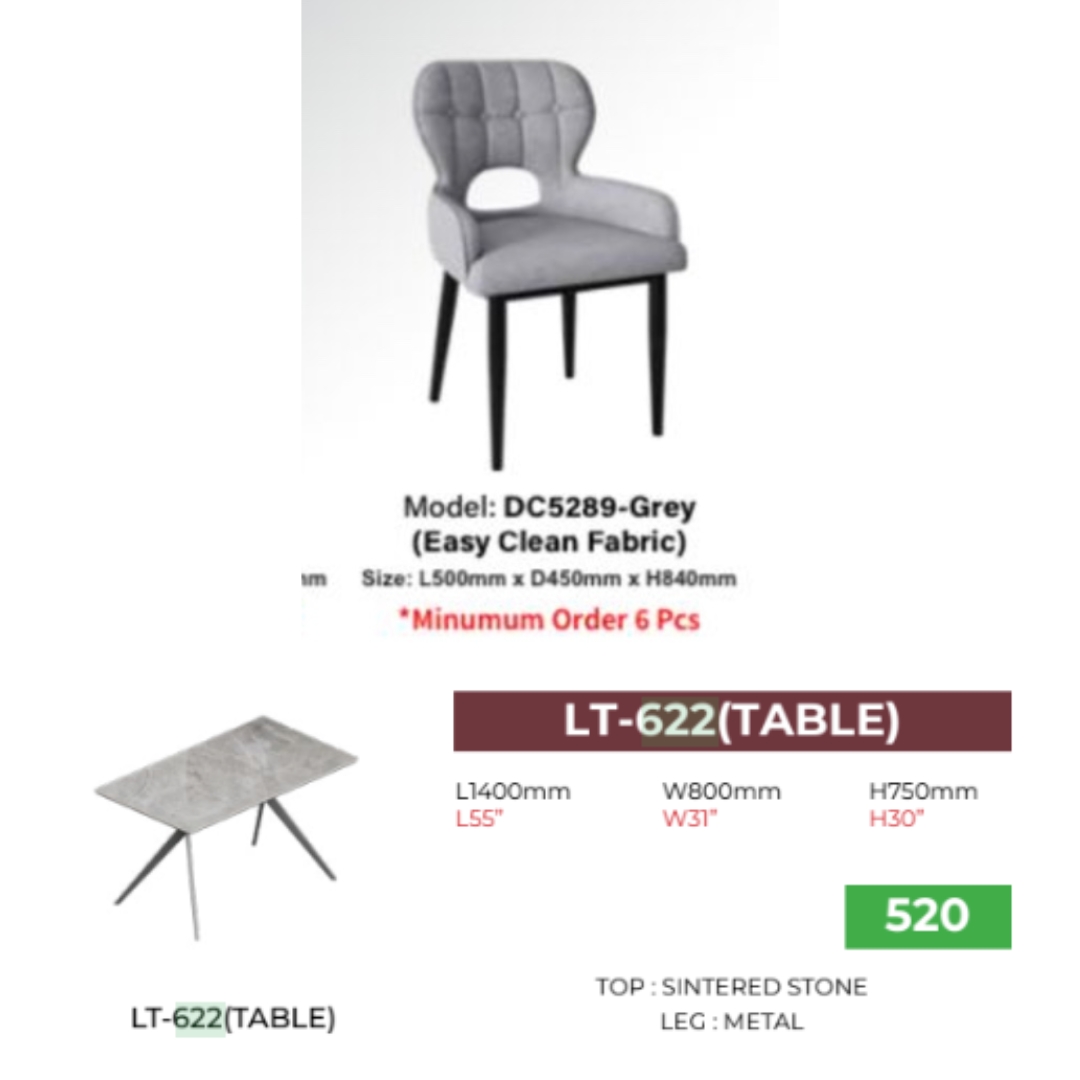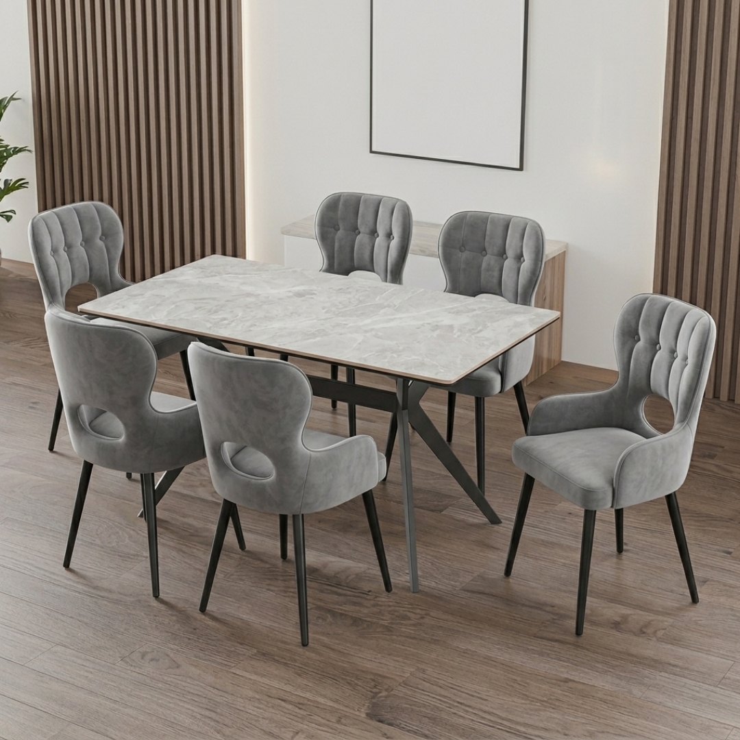 - KAZE 6 Seater Sintered Stone Dining Set-Grey