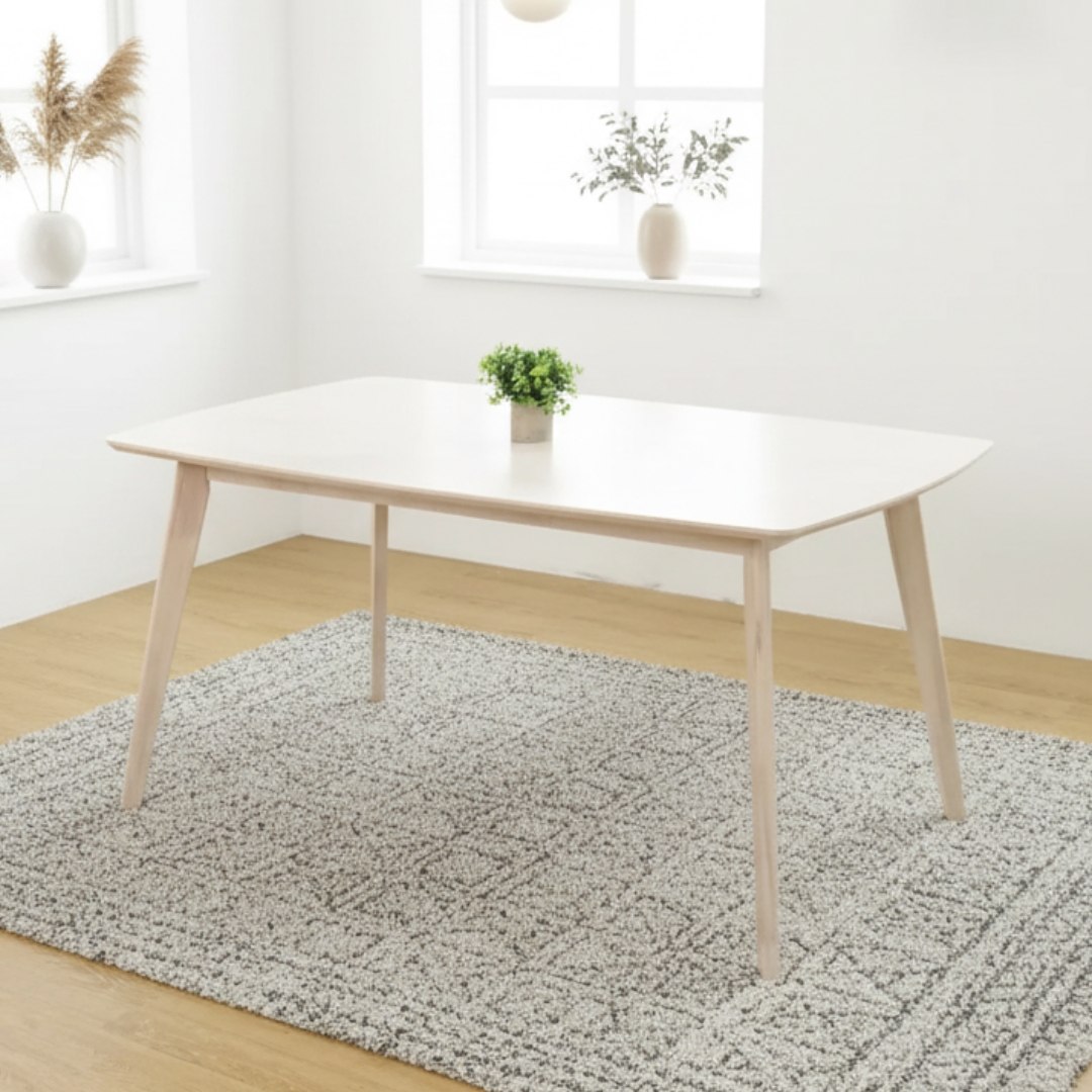KEN 140x80cm Full Solid Wood Table-White Wash
