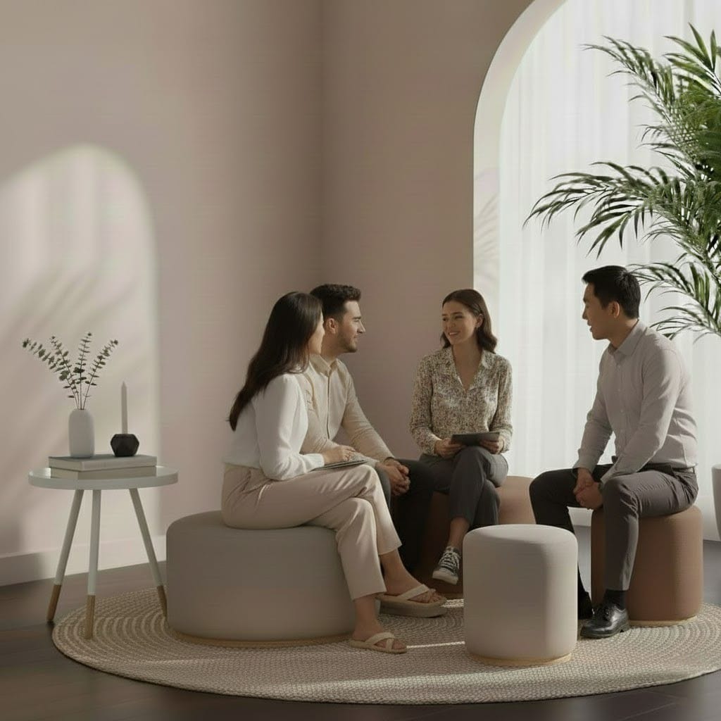 - KENTU Danny Fabric Round Pouf Stool-2 Colors