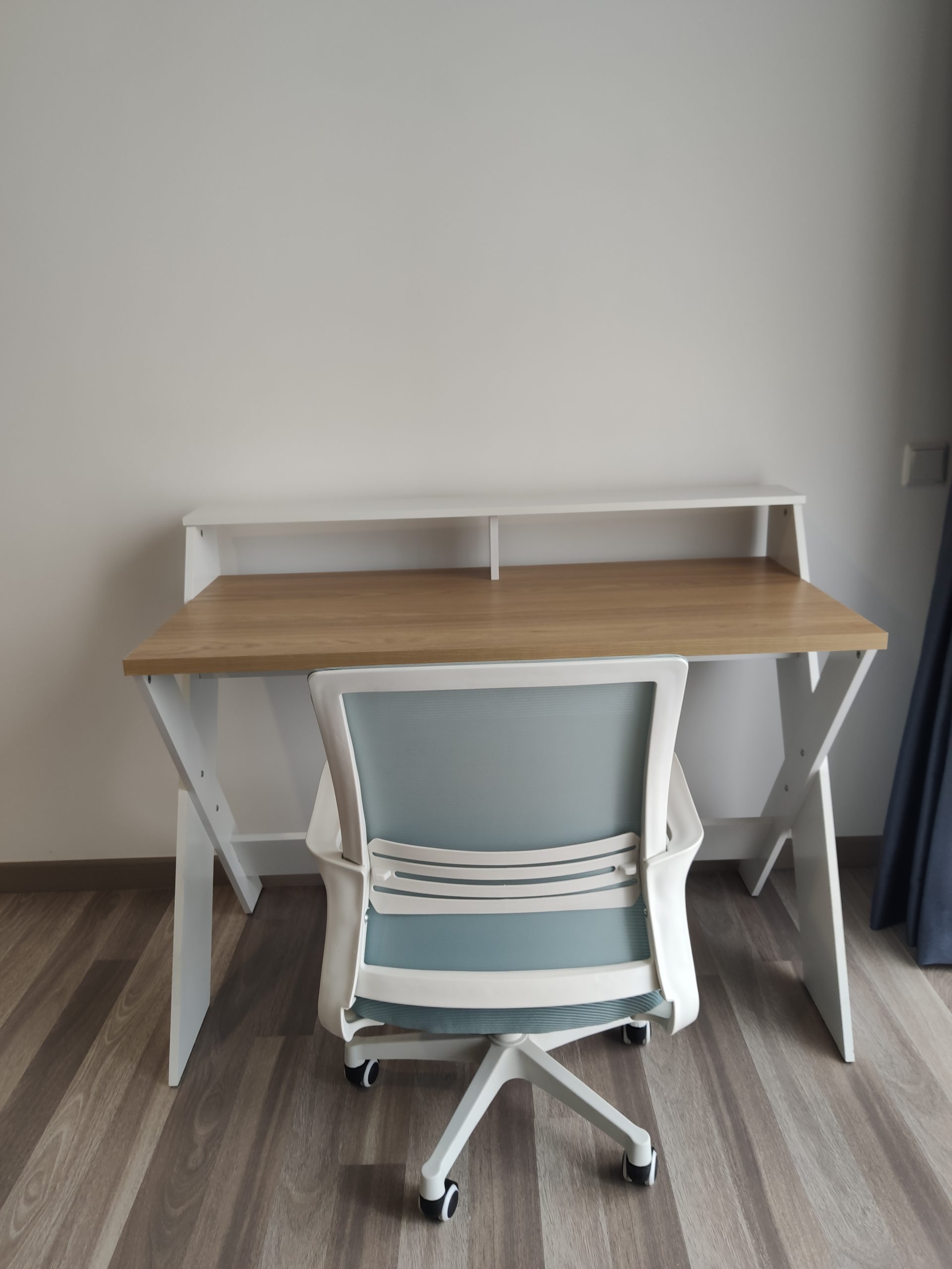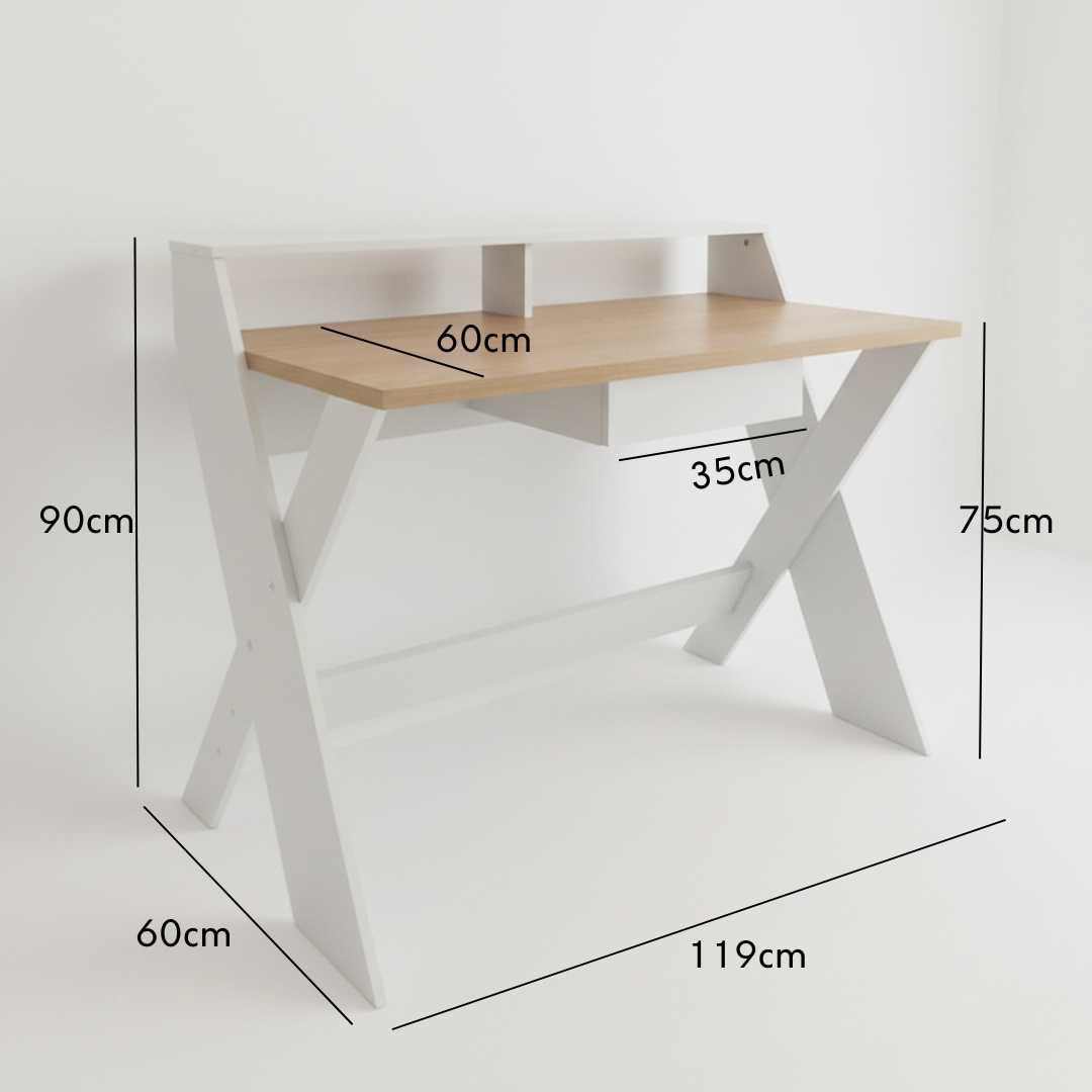 KIAN 120cm Study Desk With Hutch-White+Oak