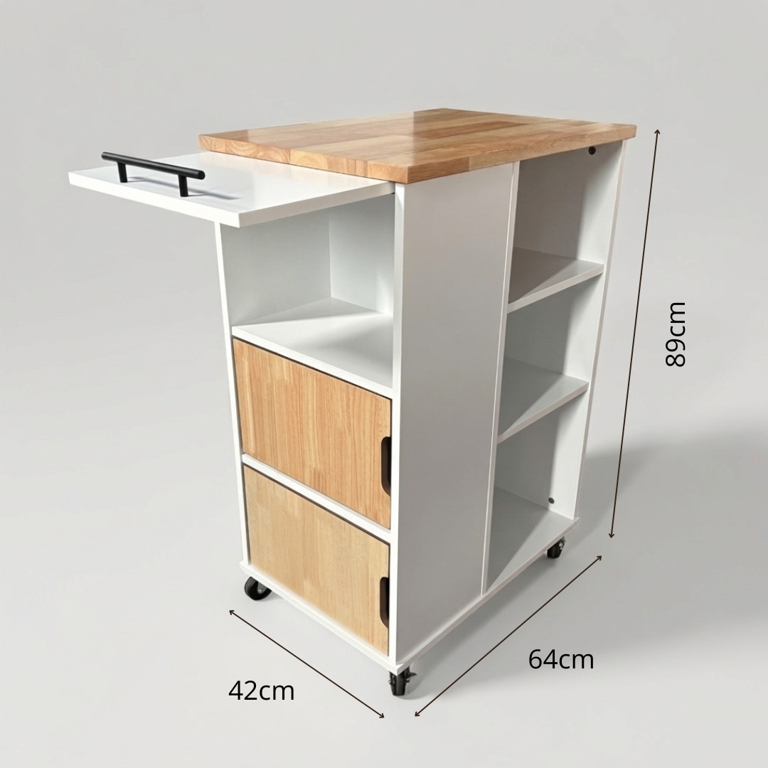 - TAYLIA Solid Wood Kitchen Cart Trolley-White