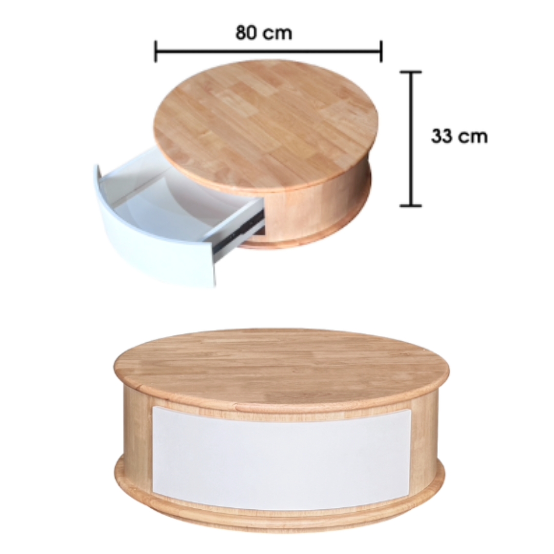 - KOOPA D80cm Solid Wood Round Coffee Table-Natural White