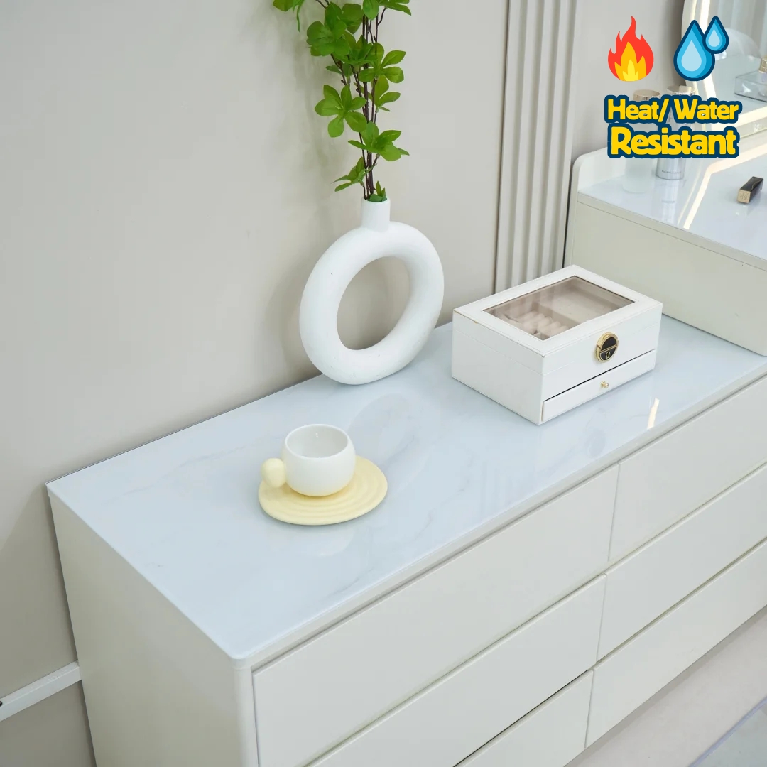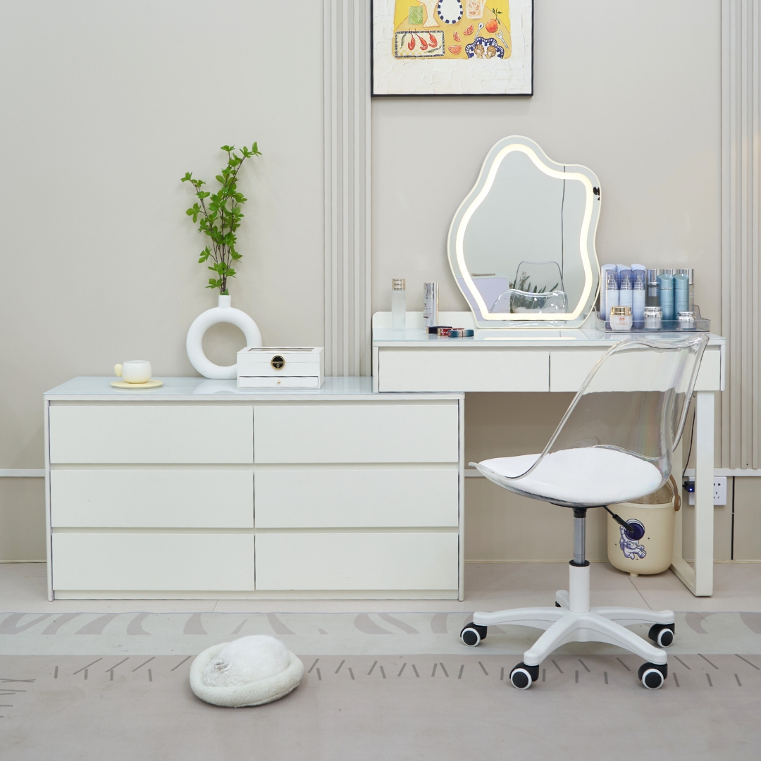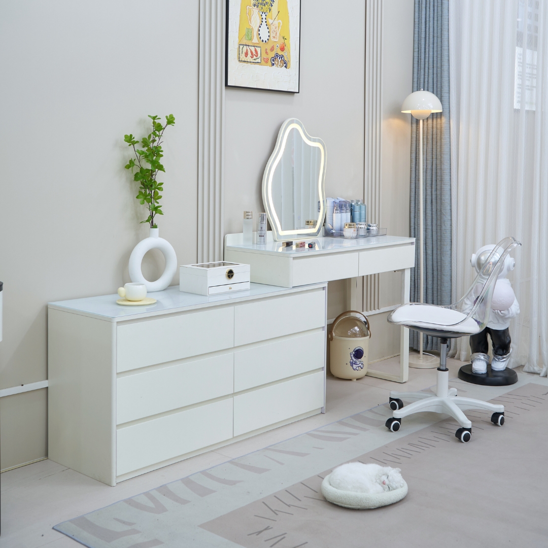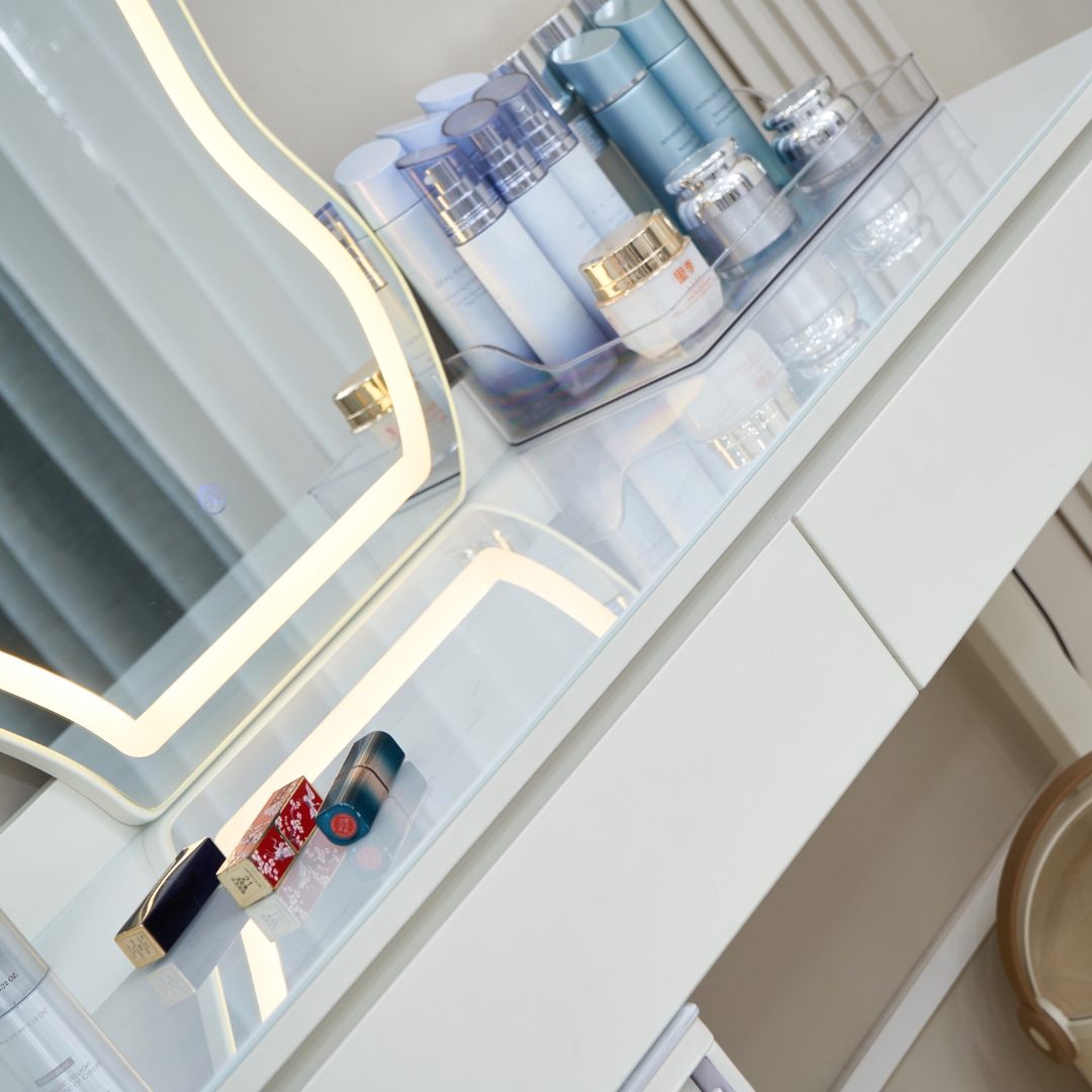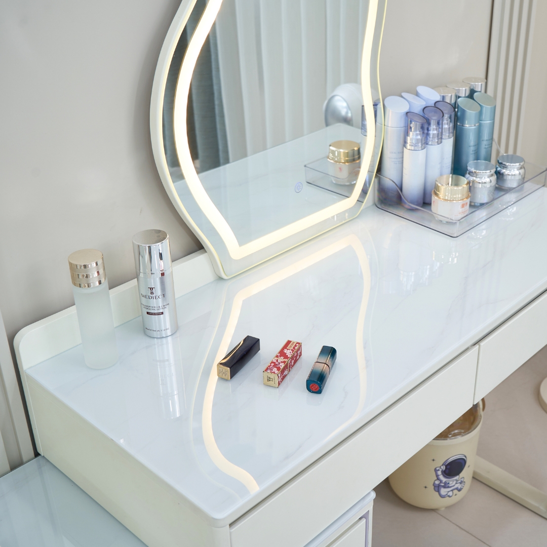 KURSK Glass Top LED Mirror Expandable Dressing Table Set