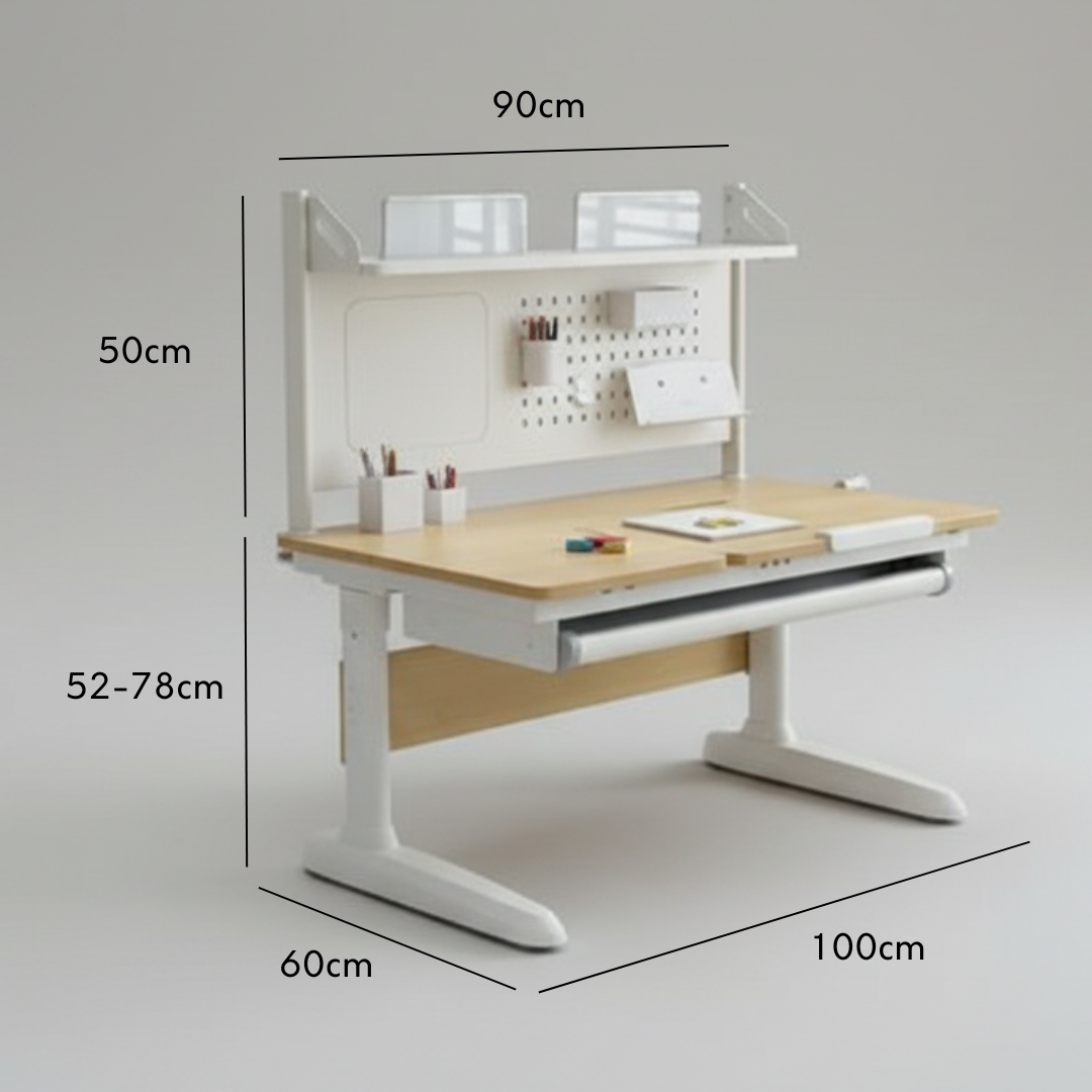 The L24S 100cm Ergonomic Kids Study Desk is made with zero formaldehyde materials for a safe and healthy environment. Featuring an adjustable tilt tabletop, it supports both writing and drawing activities. A spacious drawer and metal hutch provide ample storage, while the adjustable table height grows with your child—ensuring comfort and productivity.