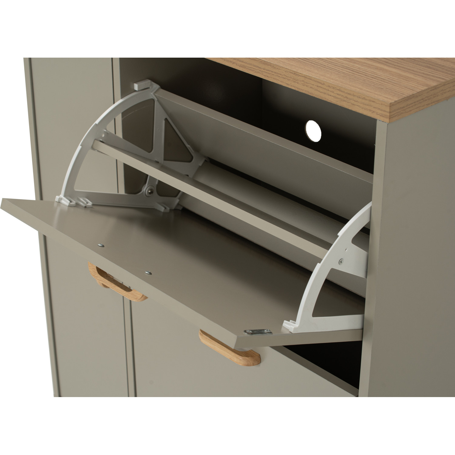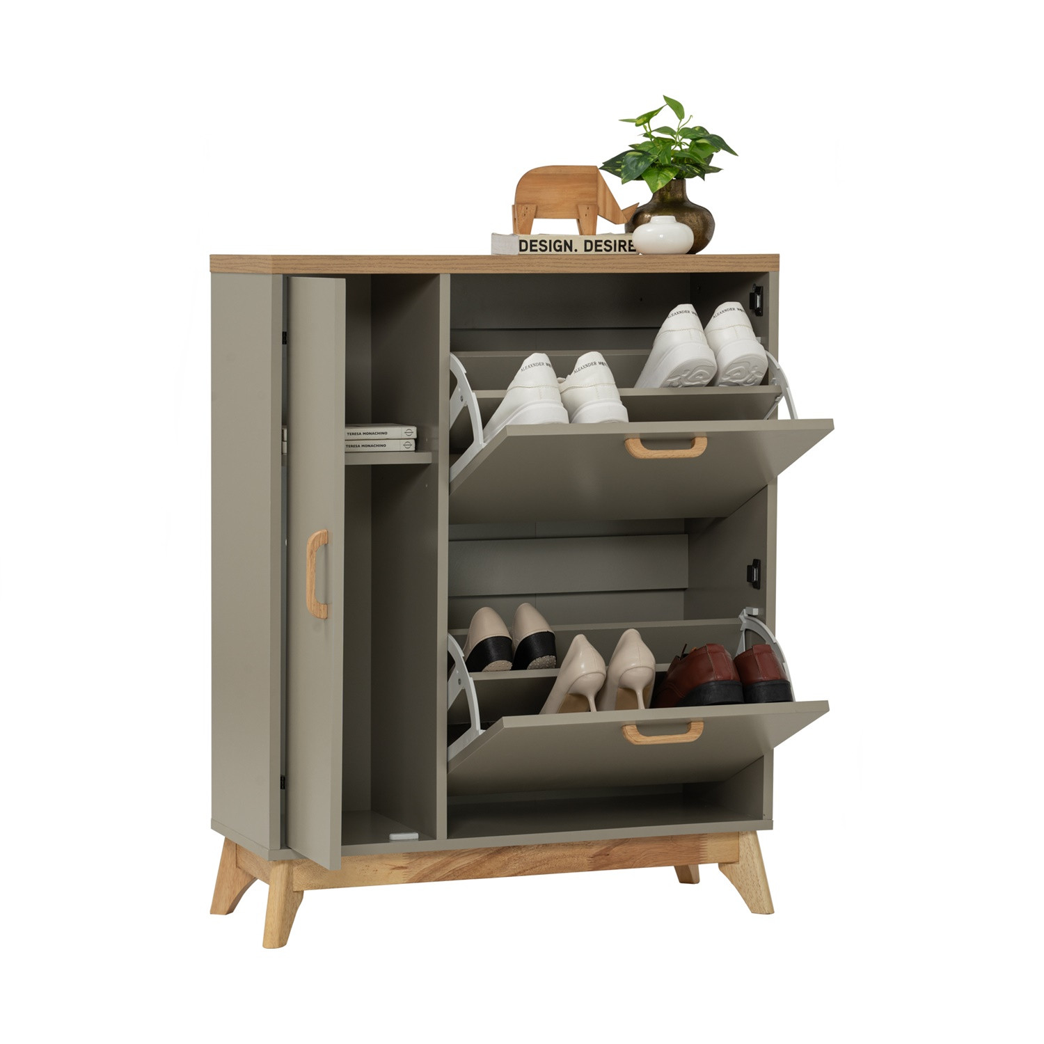 Flip open door with 2 layer of shoe storage