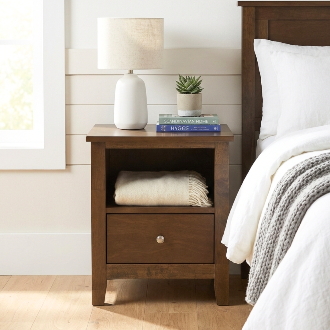LANDE Solid Wood Bedside Table-Cocoa