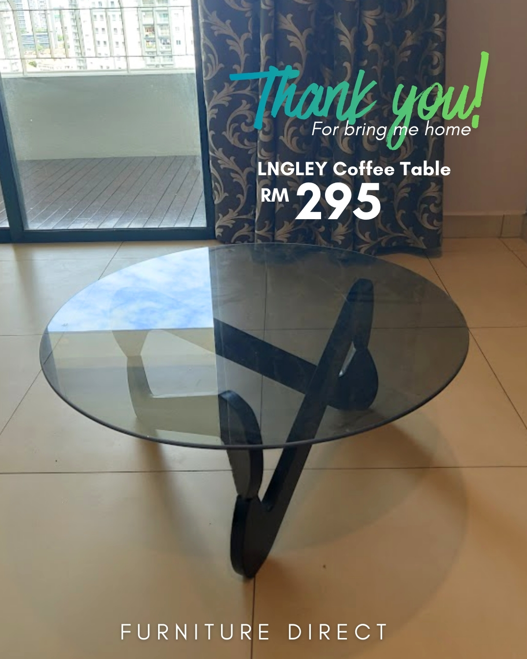 Serlahkan gaya moden kediaman anda dengan Meja Kopi Bulat LANGLEY. Ia hadir dengan permukaan kaca terbaja (tempered glass) berdiameter 80sm yang kukuh dan memberikan kesan ruang yang lebih luas. Keunikan utamanya terletak pada rekaan 3-kaki silang daripada rangka besi yang teguh, memberikan kestabilan yang jitu serta nilai estetik yang tinggi. Sangat sesuai untuk dijadikan tumpuan utama di ruang tamu kontemporari anda.
