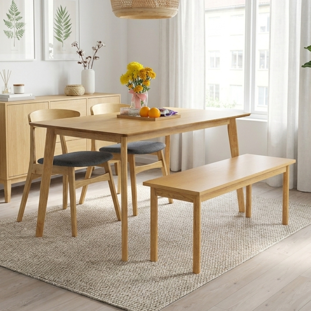 - [Last Set] CASALE 4 Seater With Bench Dining Set-Natural