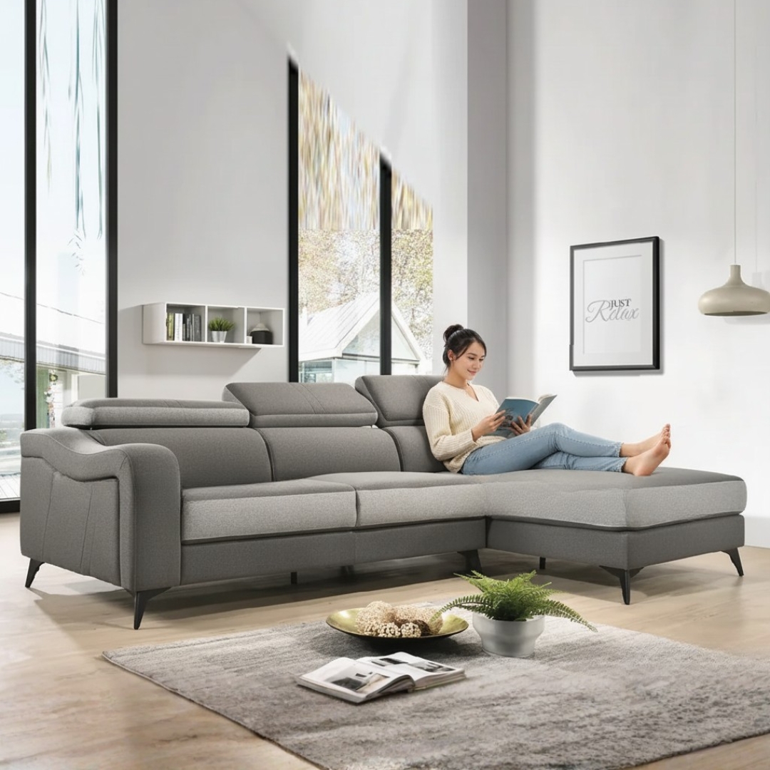 LAZIO L Shaped 3 Seater Fabric Sofa-Grey