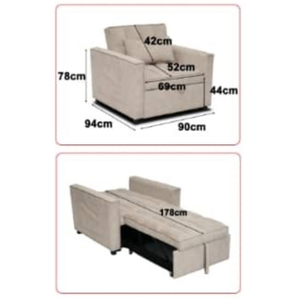 The LEAH 1-Seater Pull-Out Sofa Bed is a compact and practical solution for small spaces. Upholstered in easy-clean fabric, it features a full metal frame and smooth pull-out mechanism for quick conversion from sofa to bed. Designed with armrests that include built-in storage pockets and comes with two matching cushion pillows—perfect for relaxing, hosting, or overnight guests.