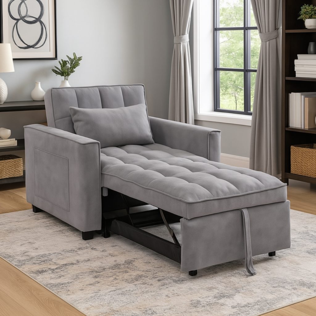 Sofa Katil Tarik 1 Tempat Duduk LEAH direka untuk ruang terhad dengan fungsi serbaguna. Fabrik mudah dibersihkan dan rangka logam penuh memastikan ketahanan serta mekanisme penarikan yang lancar. Sandaran tangan dilengkapi poket simpanan, dan disertakan dua bantal hiasan—sesuai untuk berehat atau menerima tetamu bermalam.