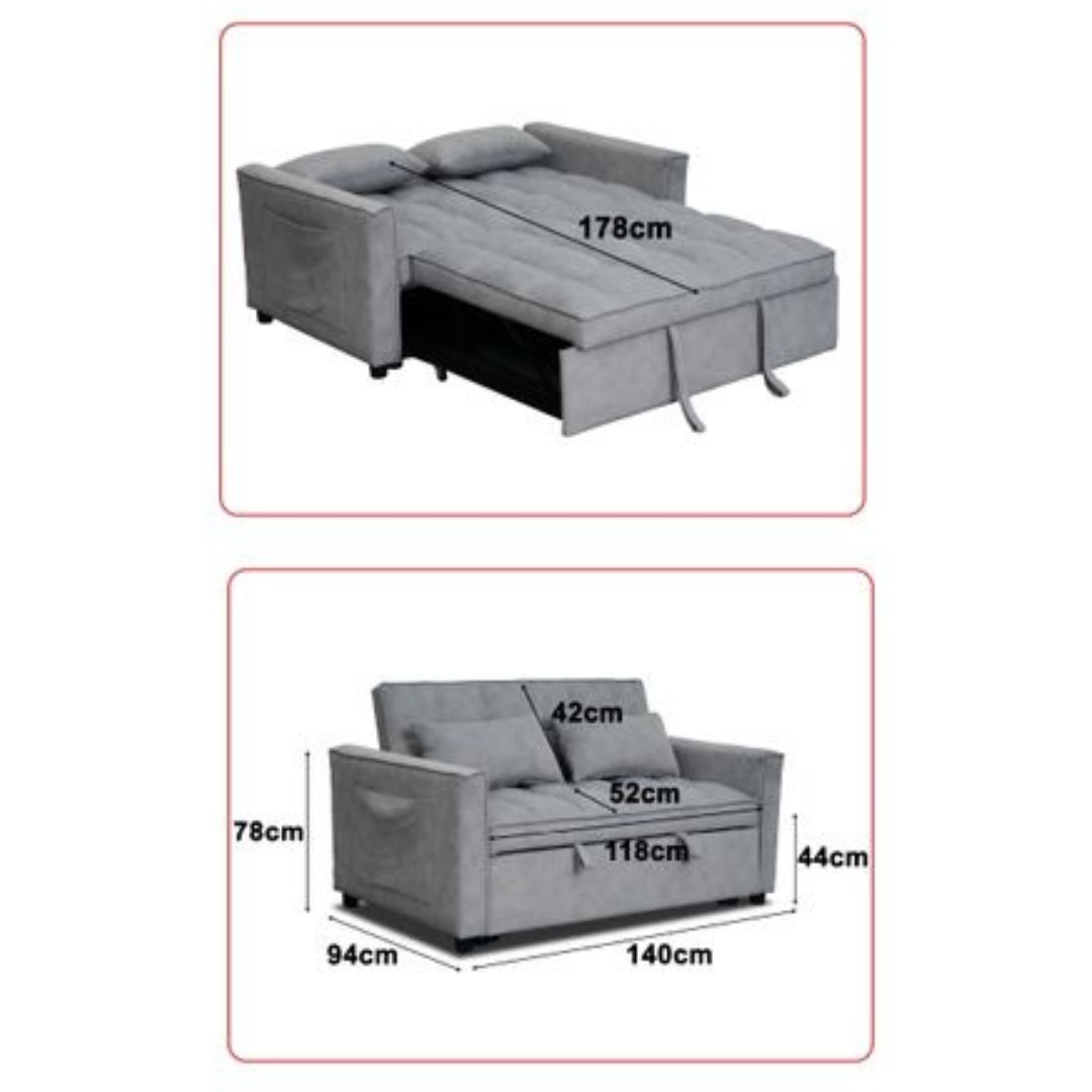 LEAH 双人拉出式沙发床,体积小巧,功能实用,适合小空间使用。采用易清洁布料包覆,配备全金属框架与顺滑拉出结构,轻松切换为床。扶手设有收纳袋,附赠两个抱枕,兼顾舒适与收纳,是居家或接待来客的理想选择。