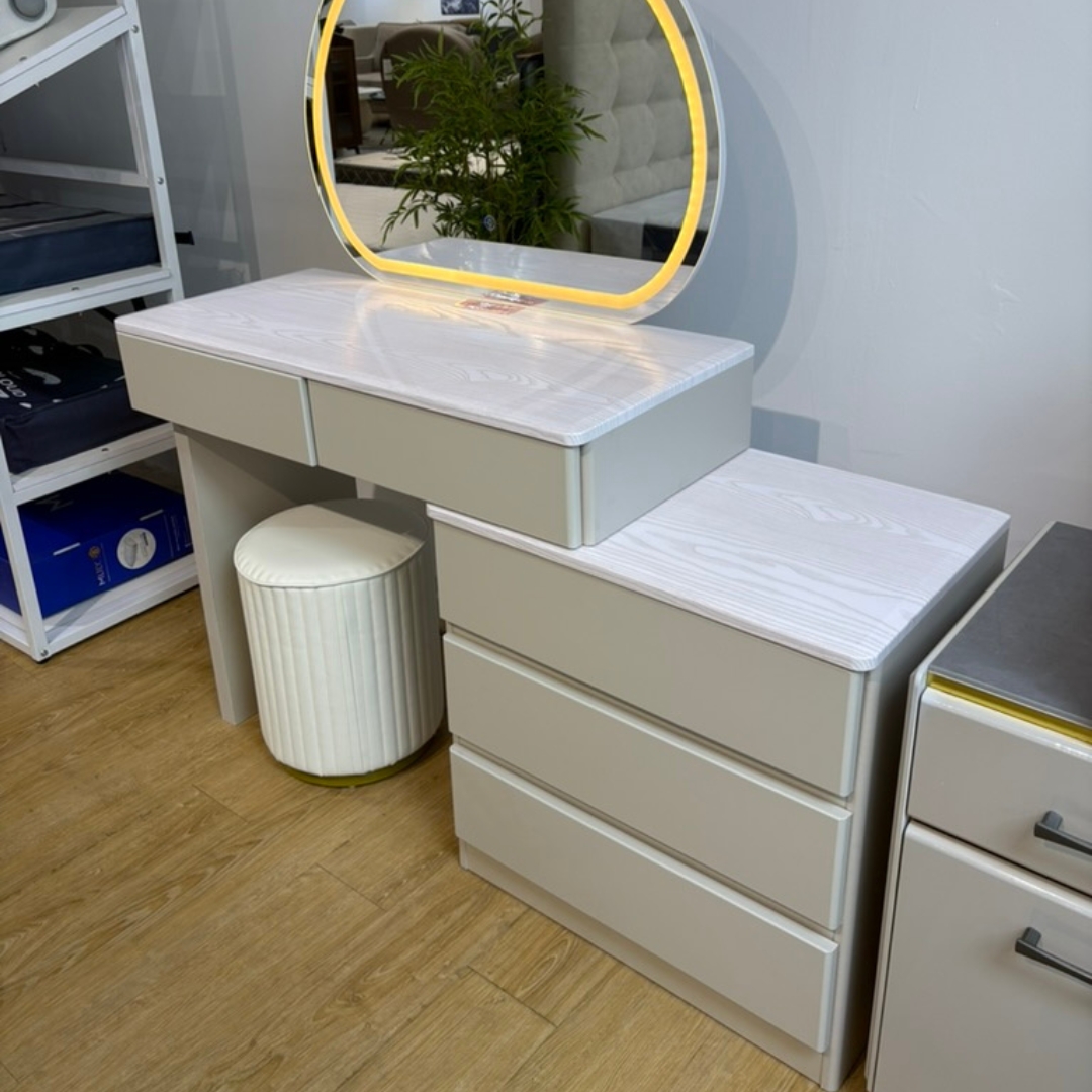 Tingkatkan ruang kecantikan anda dengan Set Meja Solek LED LEGACY. Ia tampil dengan rekaan boleh laras (expandable) yang membolehkan anda mengubah saiz lebarnya mengikut kesesuaian ruang bilik. Meja ini menyediakan storan yang luas dengan 5 laci simpanan untuk menyusun alat solek dan aksesori. Dilengkapi dengan cermin penderia sentuh (touch sensor) LED, ia memberikan pencahayaan sempurna untuk bersolek. Set lengkap ini turut disertakan dengan kerusi (stool) solek yang padan.