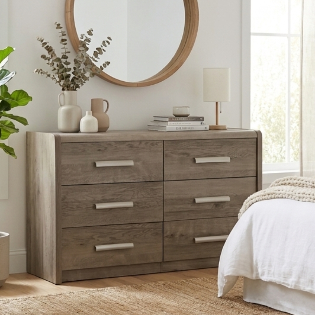 WINNY 6 Drawers Dresser Chest-Light Walnut