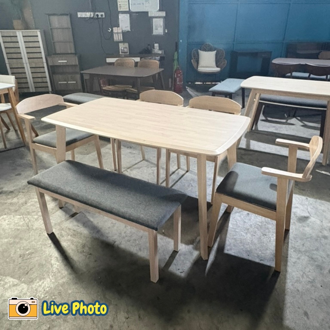 [Last Set] LEVANTE 6 Seater With Bench Dining Set-White Wash