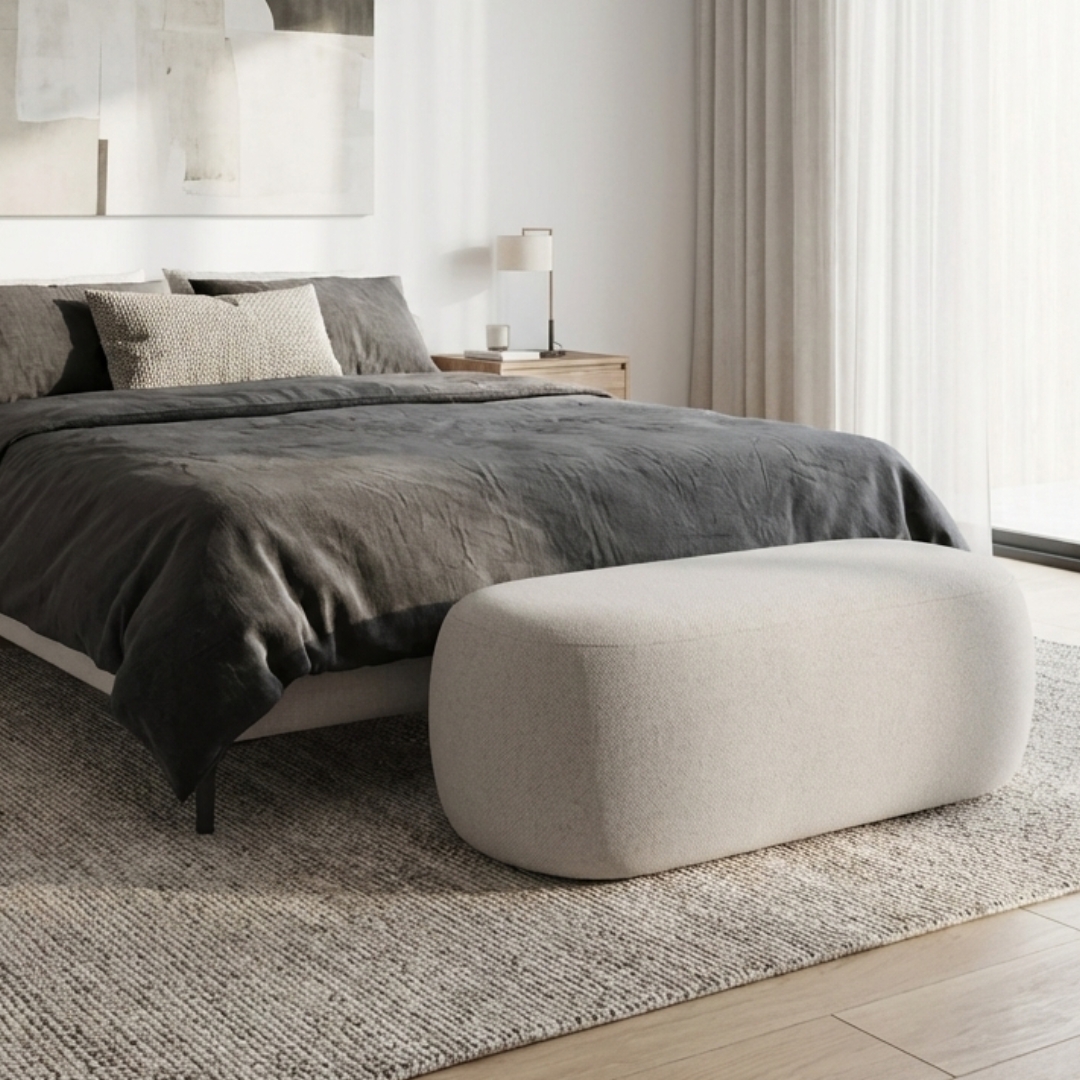 LEXI 100cm Rubby Fabric Pouf Bench-Stone