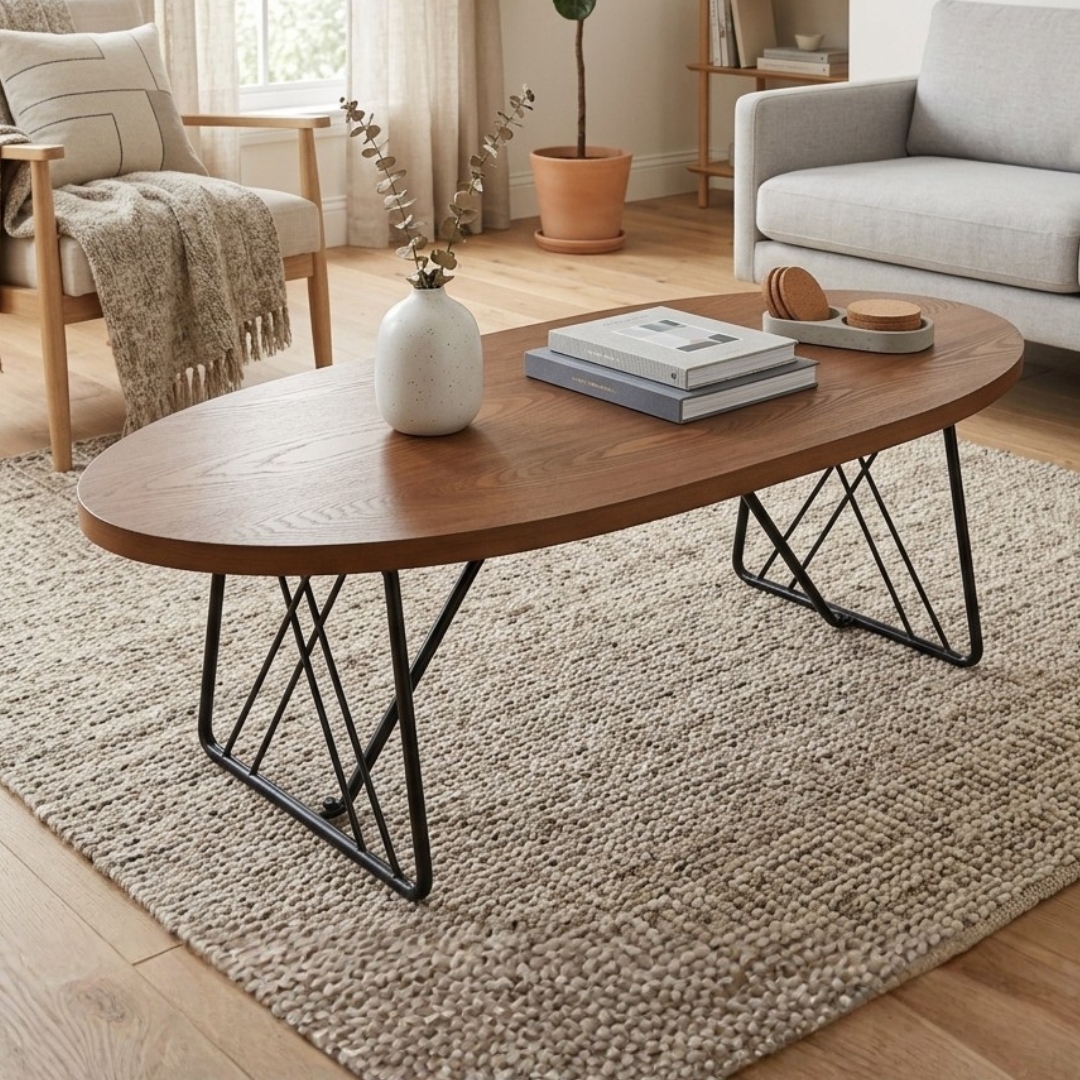 - LODI 120cm Oval Shaped Coffee Table-Light Walnut