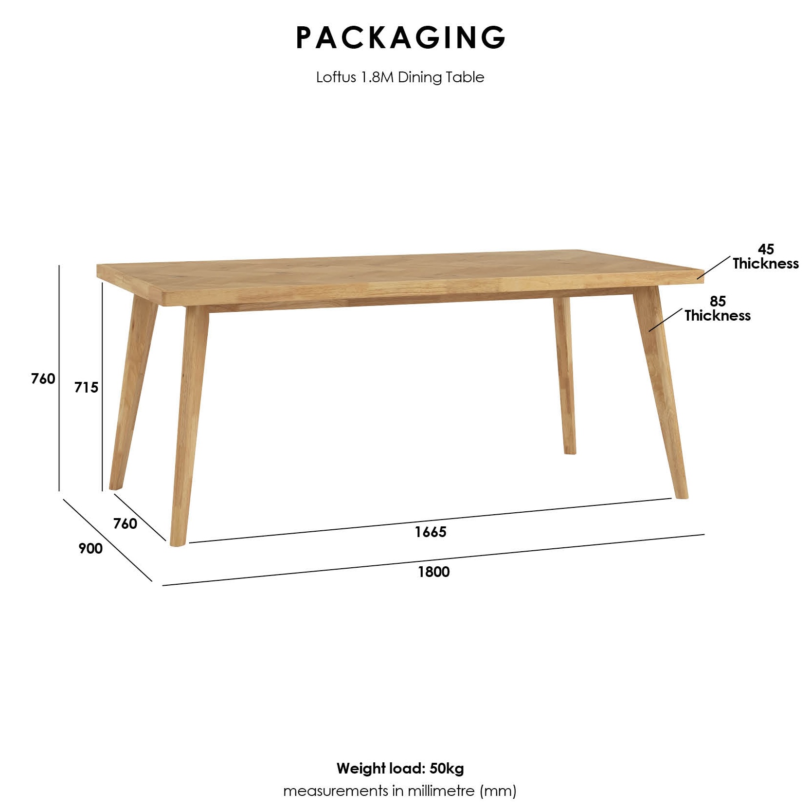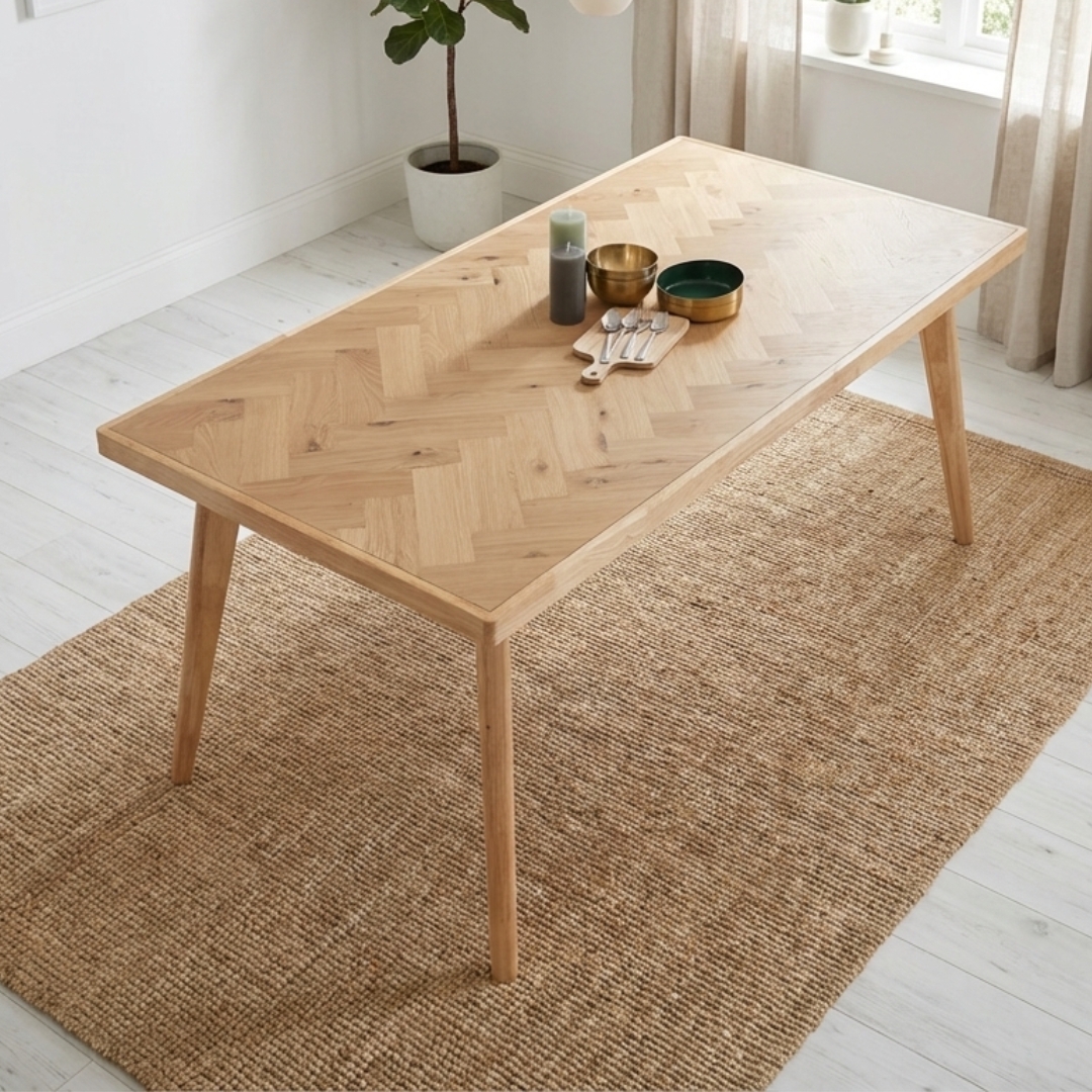 - LOFUS 180cm Herringbone Pattern Dining Table-Natural Oak