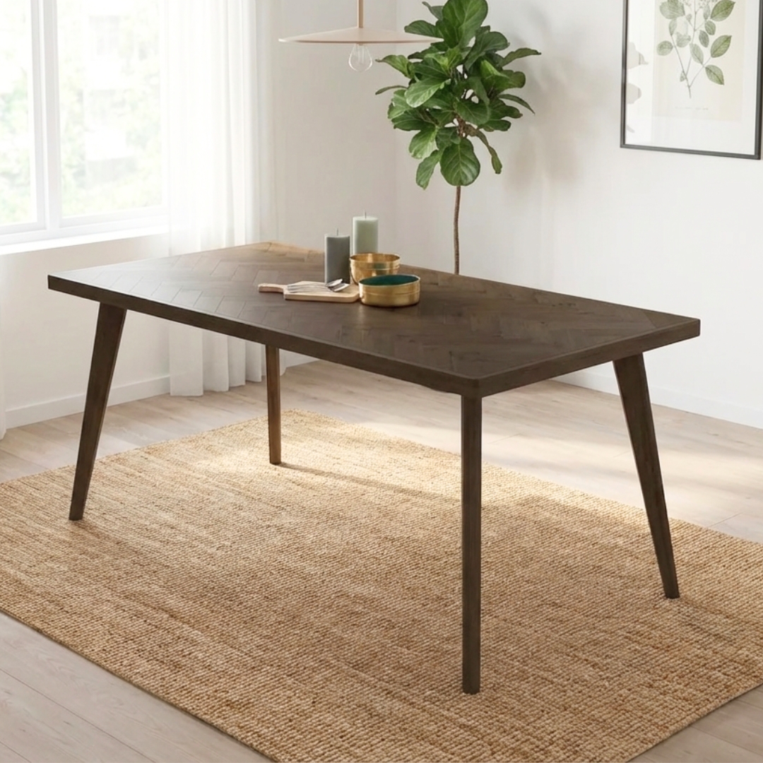 - LOFUS 180cm Herringbone Pattern Dining Table-Smoke Oak