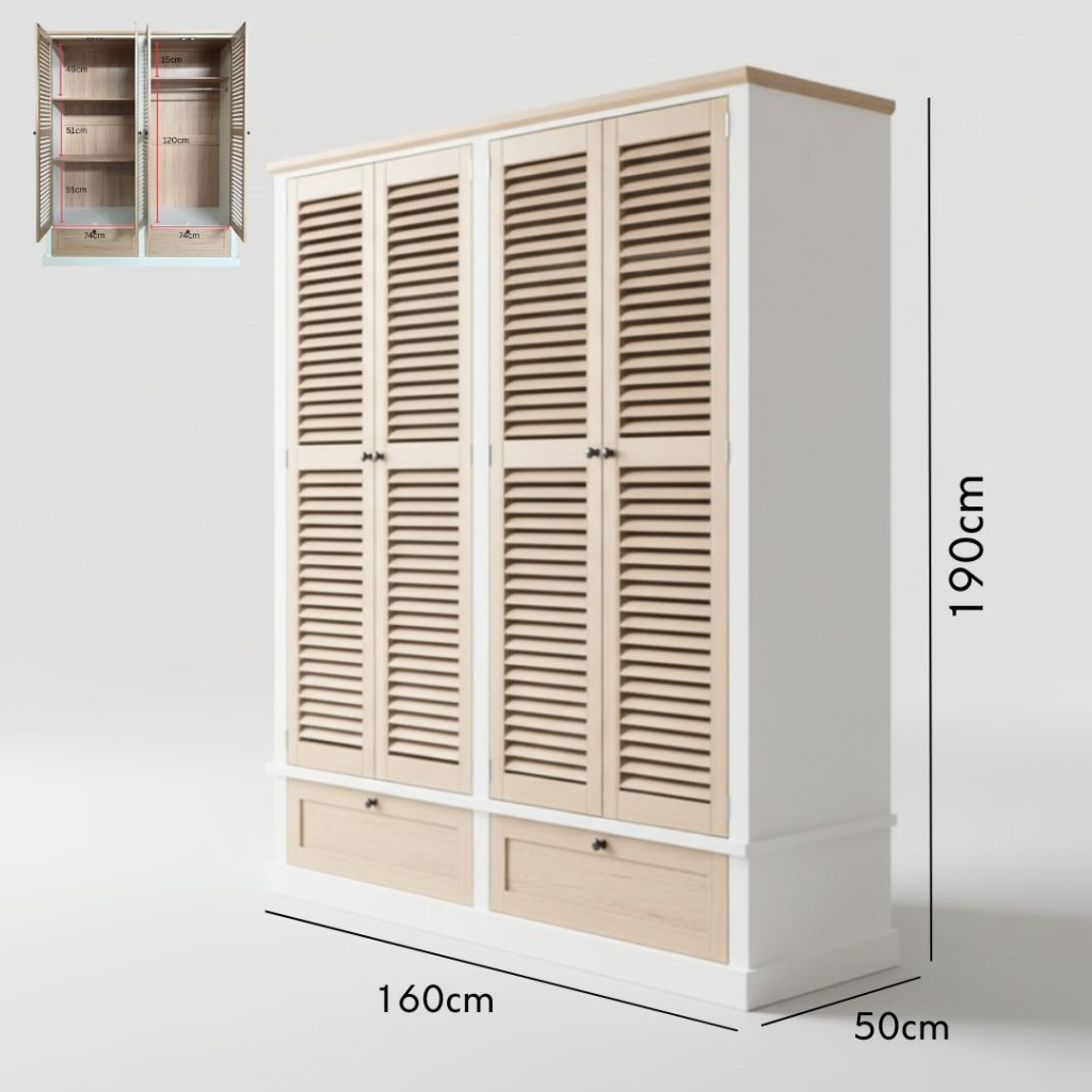 Lengkapkan bilik tidur anda dengan gaya elegan Almari LOWES 4 Pintu Shutter Louver.