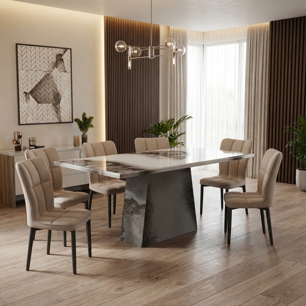 VIRGILIA Artificial Marble 6 Seater Dining Set
