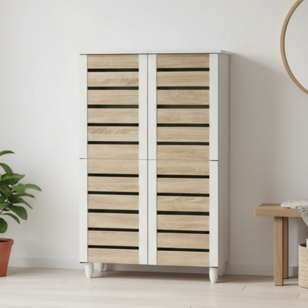 ENYA 4 Door Shoe Cabinet-Oak+White