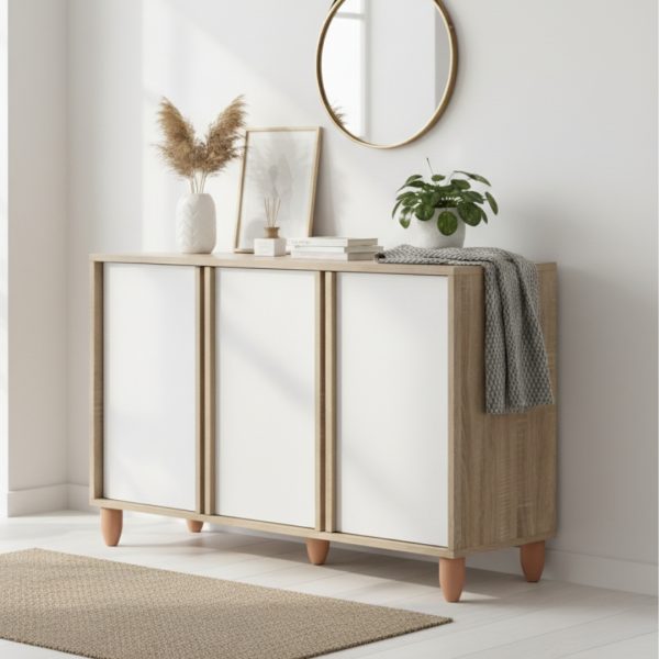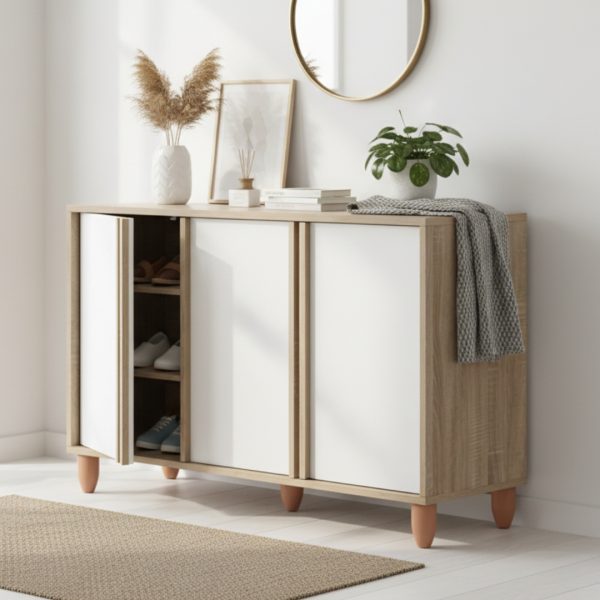 OLIVER 3 Door Shoe Cabinet-Oak+White