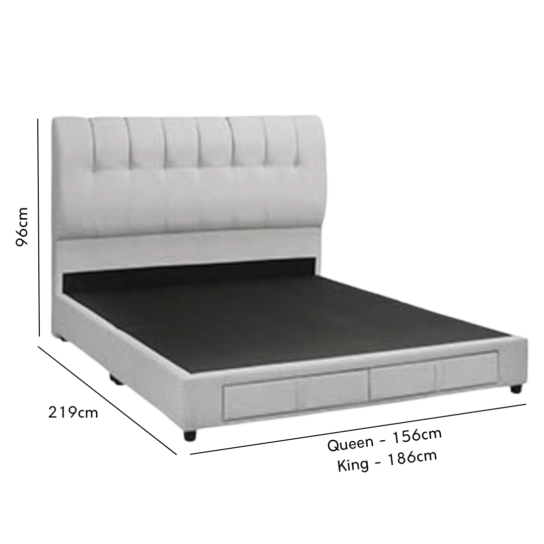 LUSSON Queen & King Size Drawer Bed Frame-Cream
