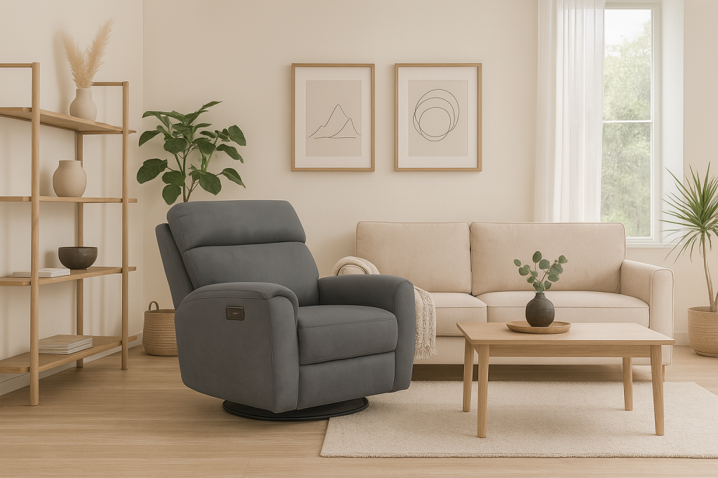The LUXUS Power Recliner offers ultimate comfort and modern convenience. Upholstered in pet-friendly, easy-clean fabric, it’s perfect for busy homes. Enjoy smooth 270-degree swivel movement and effortless reclining, complete with a built-in Type-C charging port to keep your devices powered. The pocket spring seat with high-density foam ensures lasting support and relaxation—ideal for your living space.