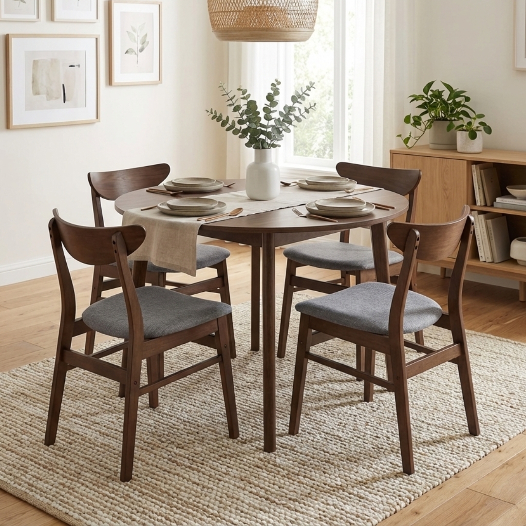 Gather your family in comfort and style with the MAISIE 4-Seater Round Dining Set. Designed for daily use, the table features a durable melamine top with an anti-scratch surface, ensuring easy cleanup and lasting beauty. Built on a sturdy Solid Rubberwood frame, the chairs offer superior comfort, featuring a plush fabric cushion seat pad and an ergonomic curved backrest complete with an additional cushion. The round design promotes easy conversation and fits perfectly into cozier dining spaces.
