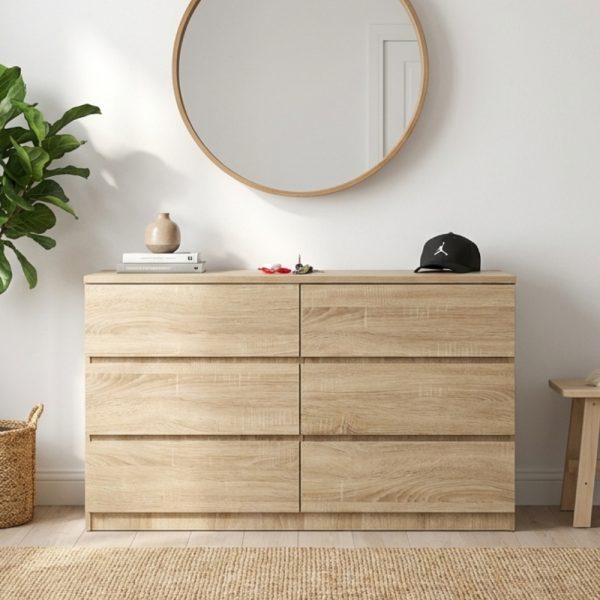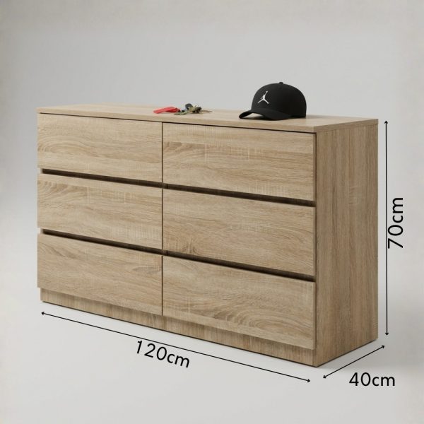 WINNY 6 Drawers Dresser Chest-Light Walnut