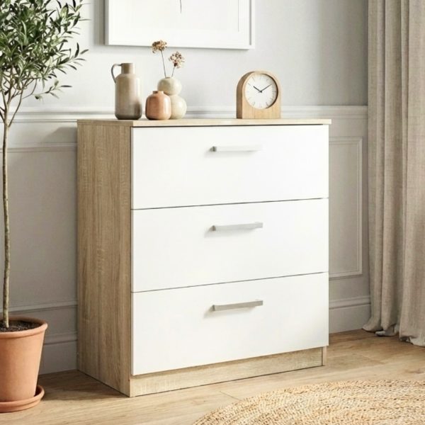 MEMPHIS 3 Drawer Chest-White+Oak