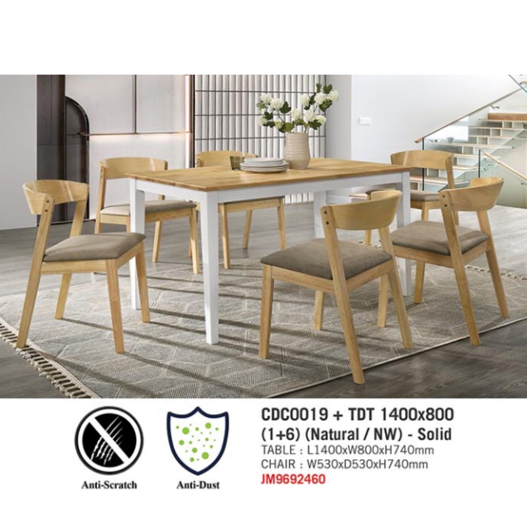 - MARCHE Full Solid 6 Seater Dining Set-Natural